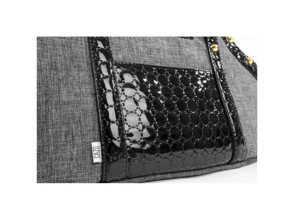 Cestovní taška pro psa CAZO DIAMOND zpříjemní cestování čtyřnohým parťákům a zároveň je skvělým módním doplňkem. Taška pro psa je vyrobená z kvalitní potahové šedé látky, díky které dobře drží tvar a pejsek v ní tak bude mít během cestování pohodlí. Svou velikostí se hodí především pro menší plemena psů. Ucha cestovní tašky pro psy jsou polstrovaná imitovanou kůží a dostatečně dlouhá, aby se lépe nesla v ruce i na rameni.