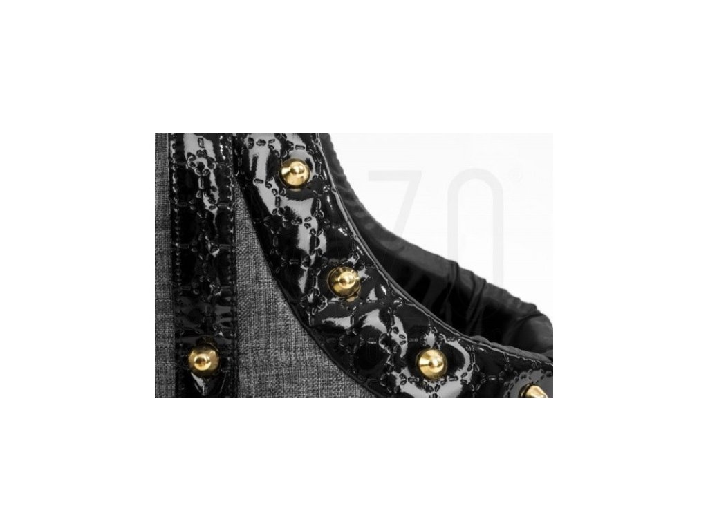 - povrch kabelky je z odolné pevné potahové látky v kombinaci s kůží, se zlatými doplňky