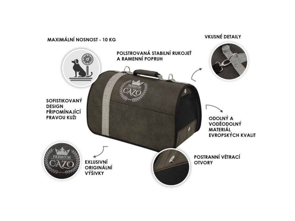 Model CAZO Premium je univerzální volbou, která splňuje všechny nároky moderního pejskaře – elegantní, odolná a praktická taška vhodná pro každodenní používání i delší cestování.