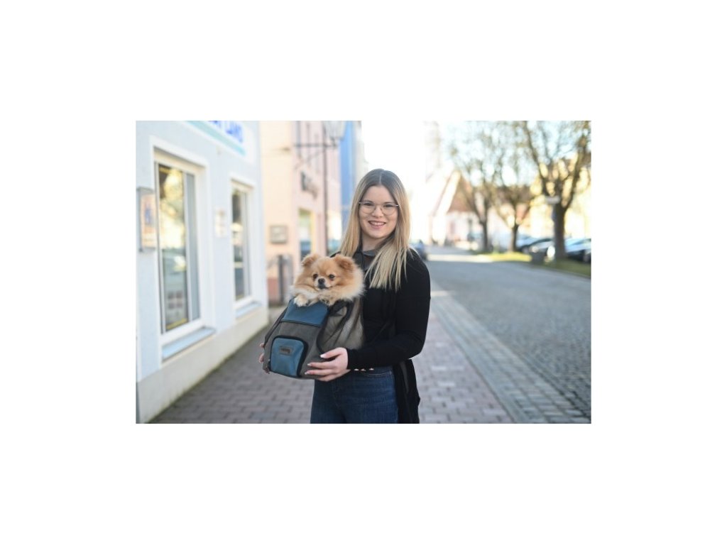 Cestovní batoh na psa Vacation, přední, 31x24x38 cm šedý/modrý