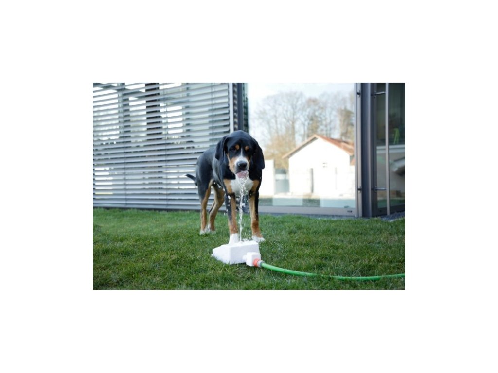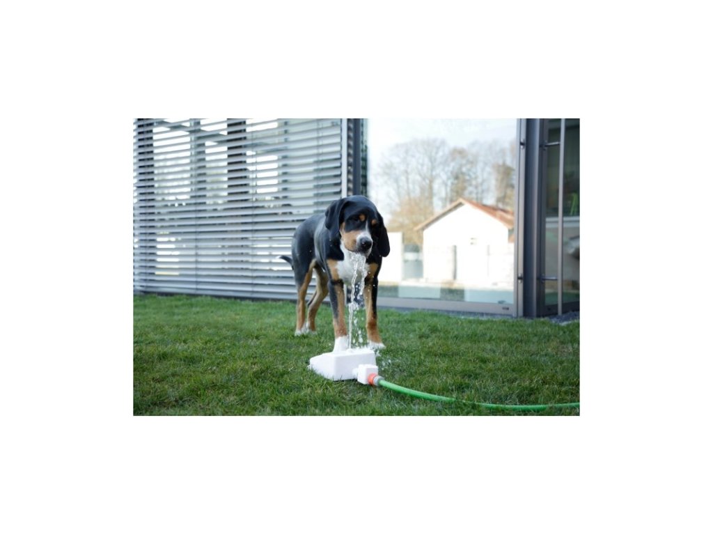Fontána pro psy slouží jako pítko a zároveň jako interaktivní hračka pro psy v jednom. Proud vody může pes sám snadno ovládat sešlápnutím pedálu svojí tlapkou. Skvělá zábava pro psa v horkých dnech a současně dostupnost osvěžující a čerstvé vody. Jednoduché připojení pomocí běžných přípojek na zahradní hadici.