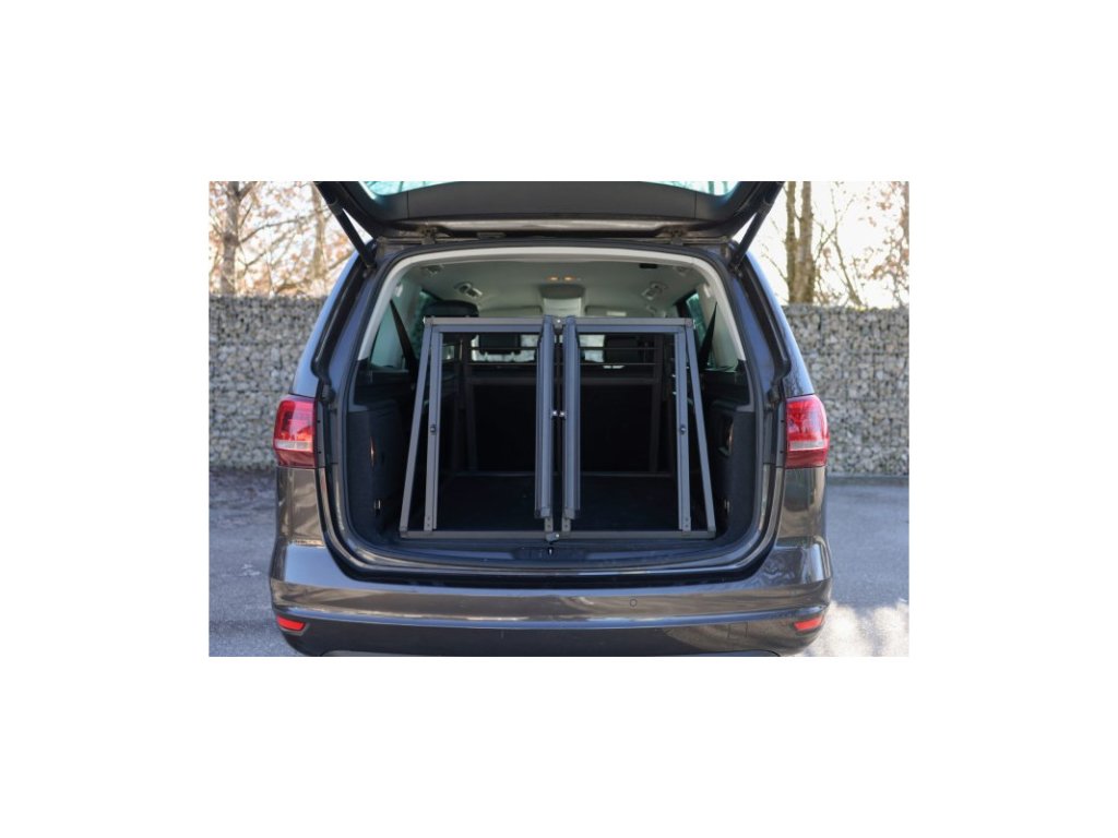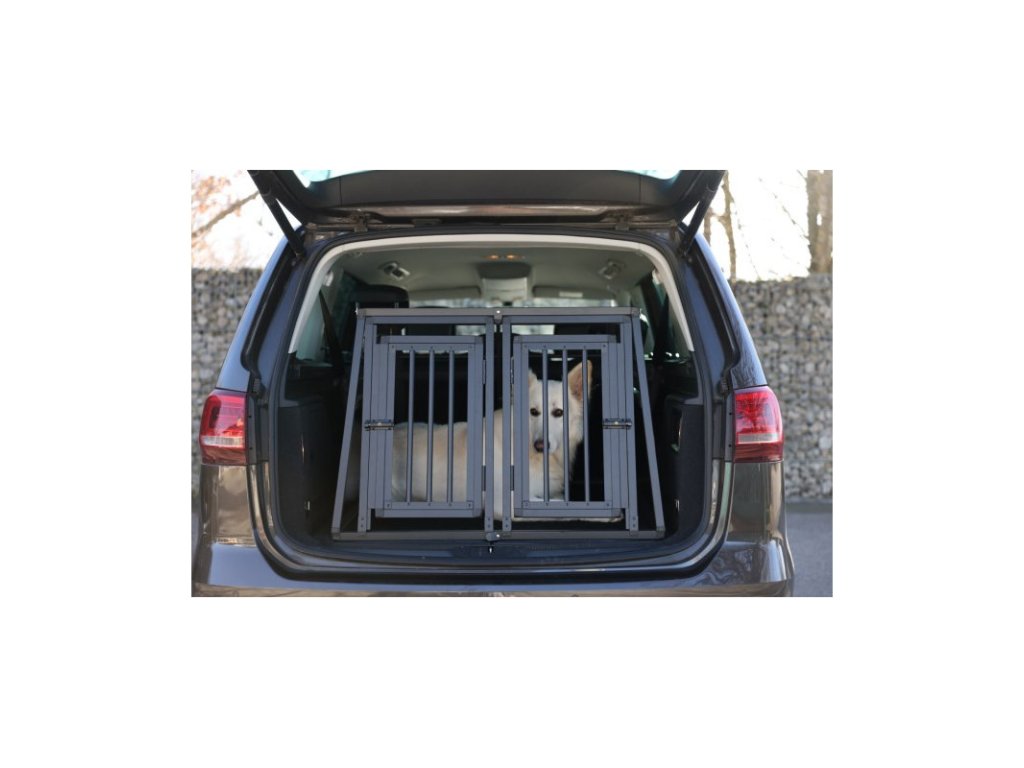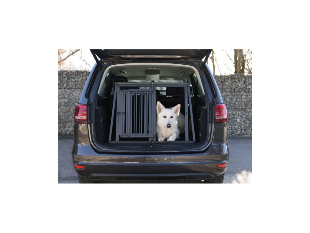 Transportní klec pro psa Vacation je speciálně navržena do zavazadlového prostoru vozu. Kvalitní stabilní a pevná přepravka pro psa z vyrobená z hlínku. Boční stěny a střecha jsou vyrobeny z vysoce kompozitního materiálu hliník/plast. Šikmá přední a zadní strana je optimální využití v zavazadlového prostoru. Disponuje velmi dobrou cirkulací vzduchu a viditelností díky hliníkovým vzpěrám ve dveřích a v horních částech přepravního boxu. Dno této klece pro zvířata je vybaveno protiskluzovým termokobercem ze syntetického kaučuku. Do klece je možné přikoupit dělící stěnu pro přepravu dvou psů.