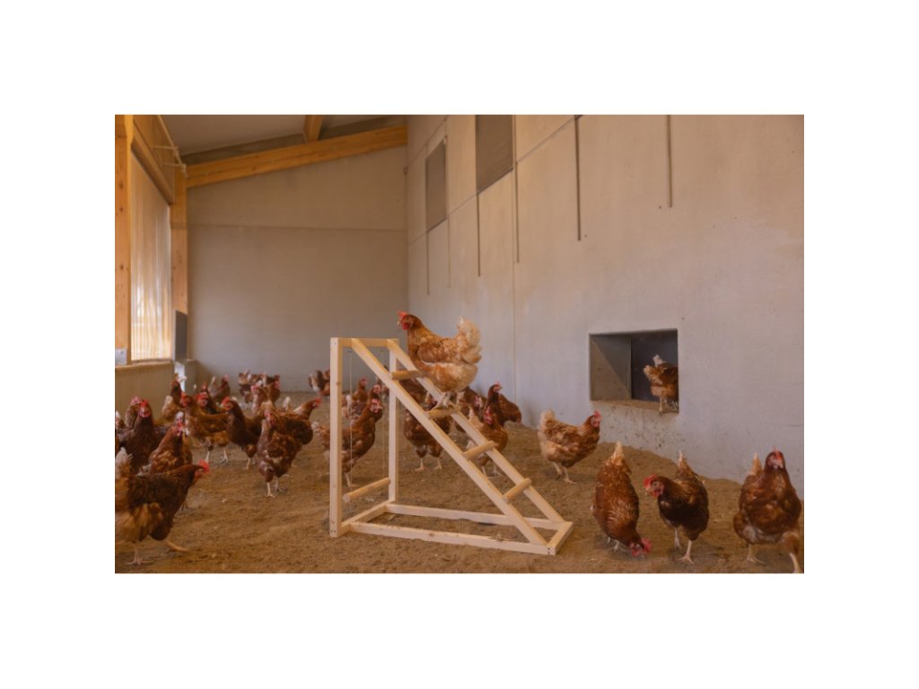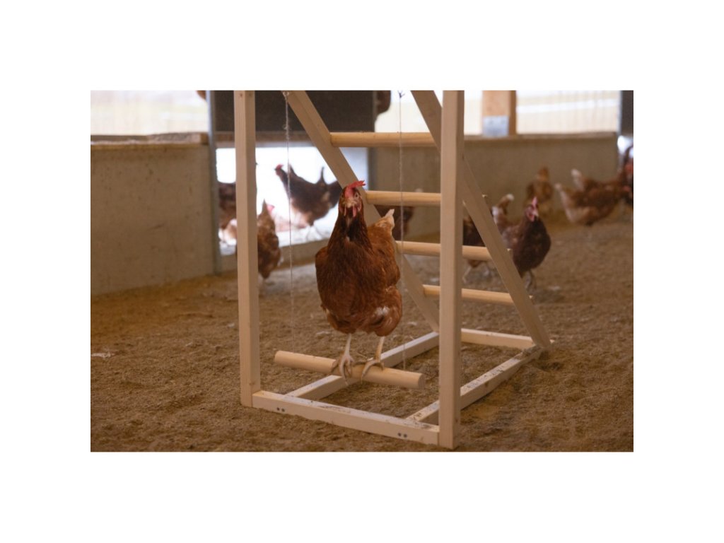 Dřevěný žebřík pro slepice zabaví vaše opeřené přátele a minimalizuje kanibalismus drůbeže (vyklovávání peří slepic). Houpačka pro slepice podporuje přirozený pohyb, čímž zlepšuje jejich fyzickou i psychickou pohodu. Lezecká věž pro slepice umožňuje slepicím lézt, odpočívat na vyvýšených místech a objevovat dosud neobjevené.