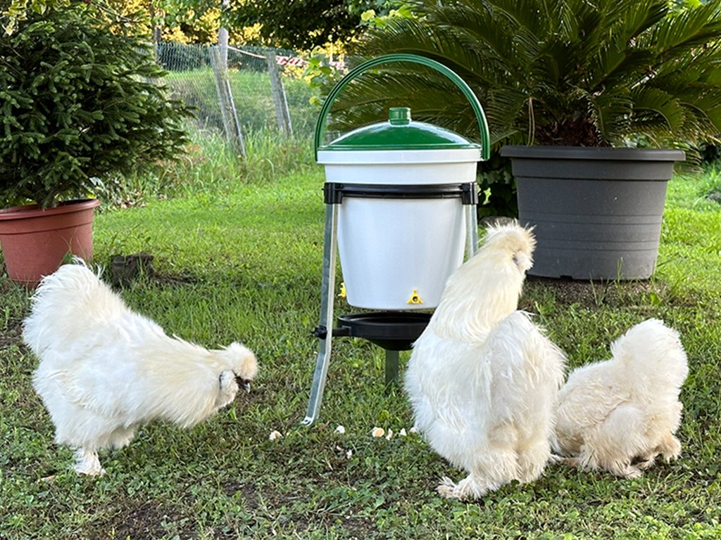 Kbelíková napáječka je vhodná pro napájení drůbeže jako jsou slepice, husy, kachny, bažanti, krůty nebo pávi.
