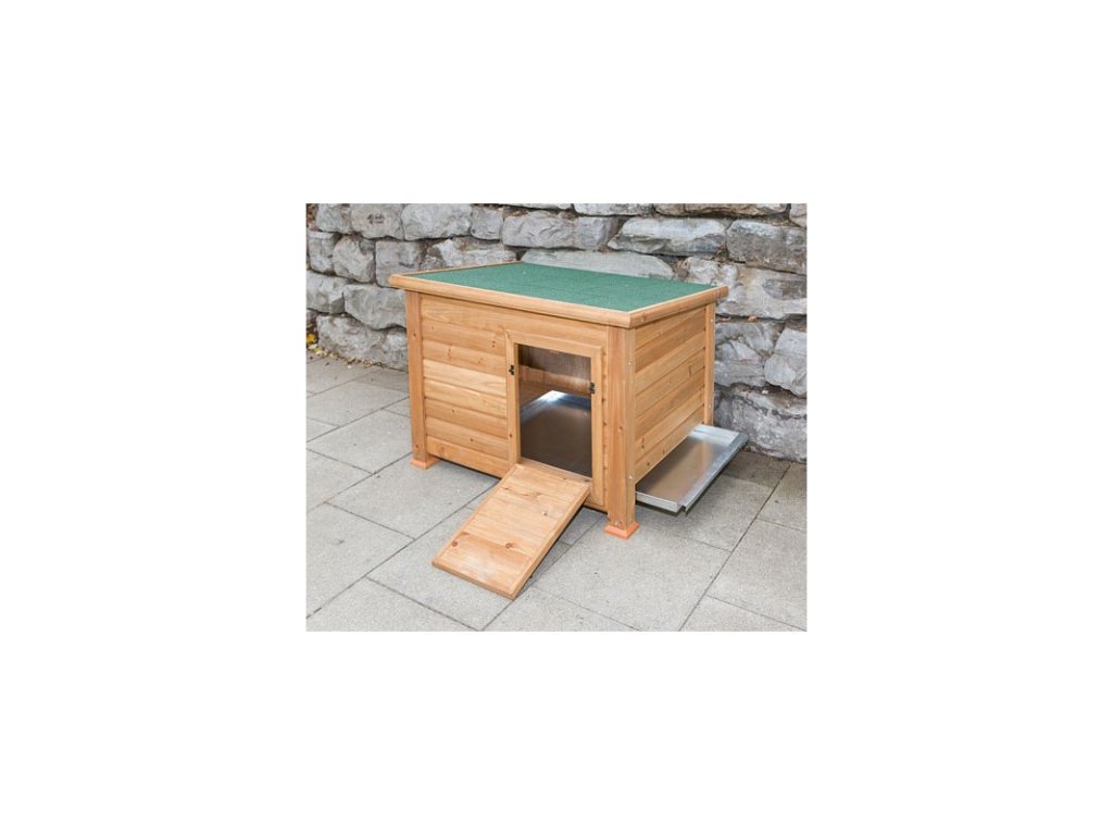 Kurník je povrchově ošetřen základním ochranným nátěrem. Pro delší životnost je třeba, jako u každého dřeva, ochranný nátěr obnovovat. Dále jej pak umístěte ideálně tak, aby byl chráněn před deštěm, sněhem a extrémním slunečním zářením.