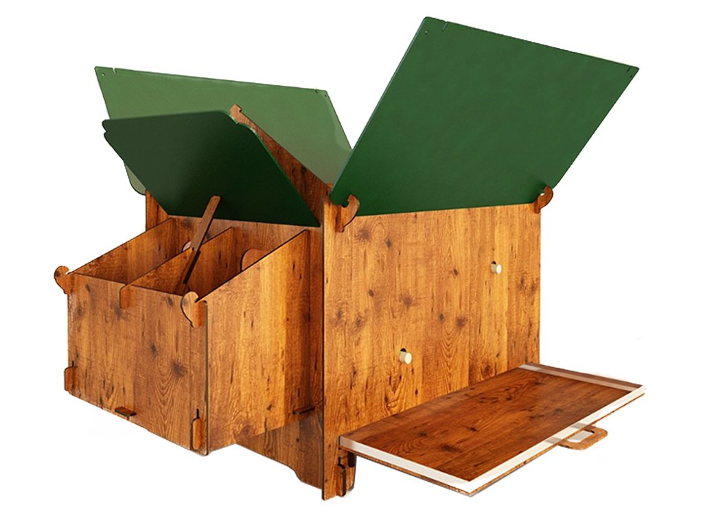 Kurník pro slepice k chovu 9-12 slepic o rozměrech 105x155x107 cm. Jedná se o velice pohodlný kurník, který je vybaven třemi hřady, dvěma vnějšími snáškovými hnízdy a výsuvným trusníkem pro snadné čištění. Kurník je vyrobený z vysoce kvalitního HPL laminátu, který je opravdu pevný, hladký, snadno se udržuje a je velmi odolný proti napadení různými parazity, zejména pak čmelíky.