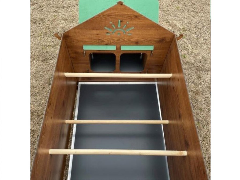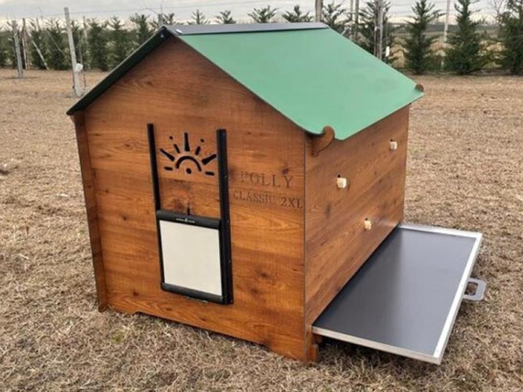 Kurník pro slepice je vybaven třemi hřady pro noční odpočinek slepic. Součástí kurníku jsou také dvě vnější kukaně, v kterých budou mít slepice dostatek prostoru a klidu pro snášení vajec. Získávání vajíček přitom bude velice jednoduché, jelikož k jejich vyzvednutí stačí pouze zvednout střechu snáškových hnízd. Součástí balení jsou bezpečnostní dvířka Polly Defender, na které můžete v případě zájmu snadno připojit automatické otevírání kurníku. Automatické otevírání a zavírání kurníku není součástí balení!