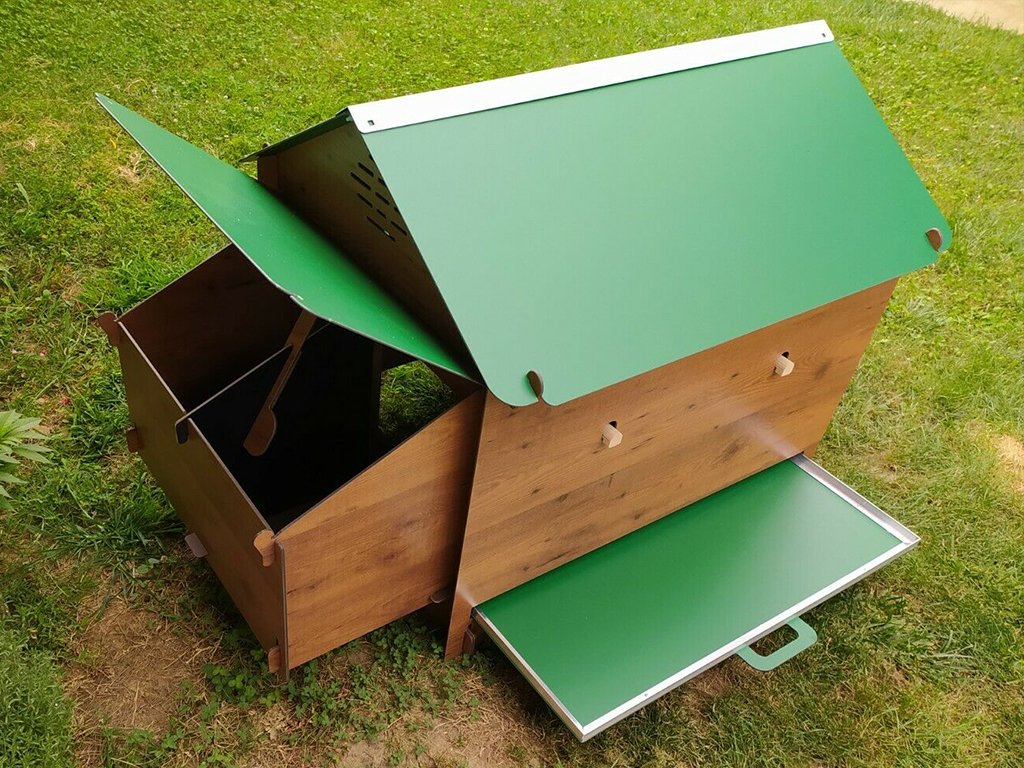 Kurník je vyrobený z vícevrstvého HPL laminátu, jehož unikátní vlastnosti si zamilujete. Kurníky vyrobené z extrémně odolného HPL laminátu splňují mimořádné požadavky na zatížení a trvanlivost. Tento speciální materiál zajištuje vynikající tepelnou odolnost jak v létě, tak i v zimě. Přirozeně zateplený kurník pro slepice tak odolává slunci, dešti, sněhu, ledu i větru. Kurník neabsorbuje žádné pachy ani vlhkost, a tak nevyžaduje prakticky žádnou údržbu, kromě běžného čištění, které je však velice snadné. Tento kurník má hmotnost cca 60 kg, takže je velmi odolný a stabilní i ve velmi silném větru. Kurník však lze snadno sestavit i demontovat bez jakéhokoliv nářadí díky patentovanému zámkovému systému, a tak nebude problém jej v případě potřeby přemístit. Kurník má atraktivní design a inovativní barevné provedení, které skvěle zapadne na každou zahradu. Kurník je dobře větraný díky štěrbinám umožňujícím optimální cirkulaci vzduchu. Samotný materiál nepodléhá hnilobě a díky jeho výjimečné pevnosti máte jistotu, že si koupíte kvalitní výrobek, který Vám zaručí opravdu dlouhou životnost.