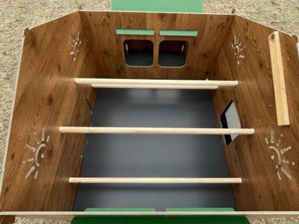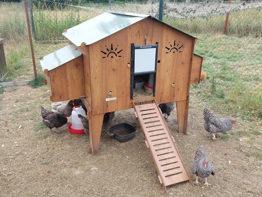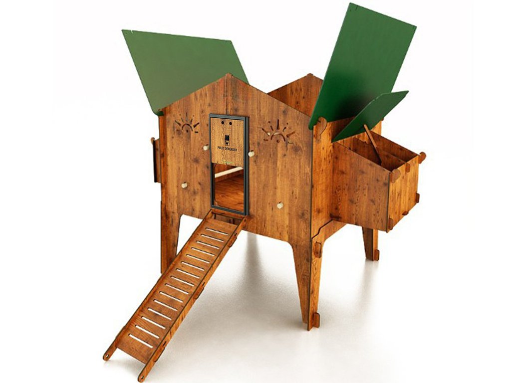 Kurník pro slepice je vybaven čtyřmi hřady pro noční odpočinek slepic. Součástí kurníku jsou také čtyři vnější kukaně, v kterých budou mít slepice dostatek prostoru a klidu pro snášení vajec. Získávání vajíček přitom bude velice jednoduché, jelikož k jejich vyzvednutí stačí pouze zvednout střechu snáškových hnízd. Díky tomu, že je kurník vyvýšen na nožkách 50 cm od země, tak poskytuje slepicím i během dne ochranu před sluncem či deštěm. Tento prostor pod kurníkem je ideální k umístění napáječek a krmítek. Do kurníku mají slepice během dne pohodlný přístup přes žebřík. Součástí balení jsou bezpečnostní dvířka Polly Defender, na které můžete v případě zájmu snadno připojit automatické otevírání kurníku. Automatické otevírání a zavírání kurníku není součástí balení!