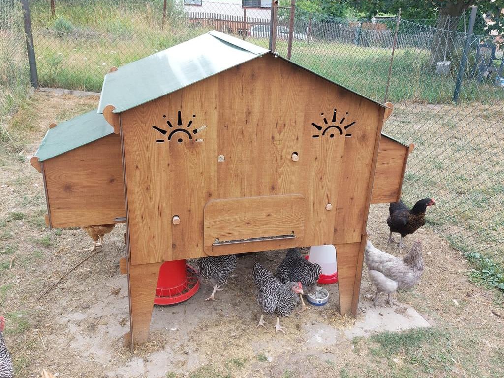 Kurník pro slepice k chovu 15-20 slepic o rozměrech 195x120x142 cm. Jedná se o velice praktický vyvýšený kurník, který je vybaven čtyřmi hřady a čtyřmi vnějšími snáškovými hnízdy. Kurník je vyrobený z vysoce kvalitního HPL laminátu, který je opravdu pevný, hladký, snadno se udržuje a je velmi odolný proti napadení různými parazity, zejména pak čmelíky.