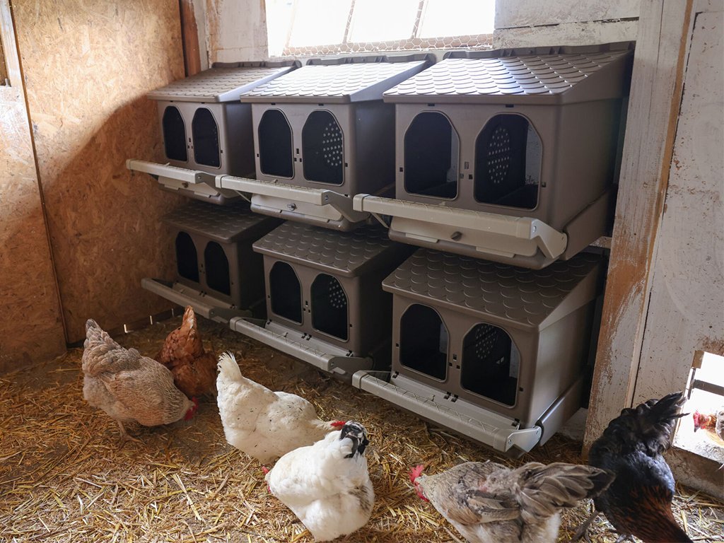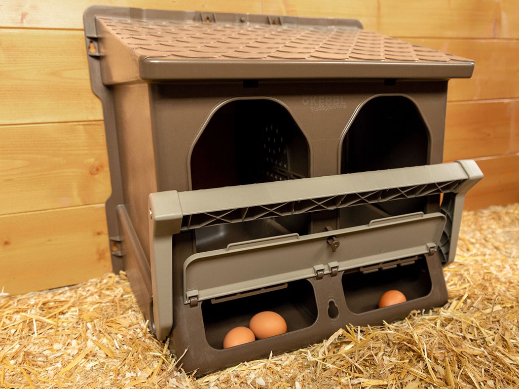 Pohodlné a bezpečné místo je základ pro správný a efektivní chov. Dostatečný a pohodlný prostor poskytnou 2 oddíly rozdělené přepážkou a s kapacitou až pro 5 slepic v každém oddíle. Do hnízda můžete vložit podestýlku, ale nemusíte, nebo můžete zakoupit praktický plastový košík do kukaně pro slepice KERBL 73147, který perfektně doplní Vaše snáškové hnízdo. Pro bezpečnost Vašich zvířat každý chovatel určitě ocení skládací bidlo, které nejen usnadňuje zvířatům vstup, ale také může uzavřít snáškové hnízdo na noc a zamezit vstup. Se šikmou střechou, která brání kuřatům na ní sedět, velkou kapacitou a možností absolutního pohodlí vytvoříte svým zvířatům to nejlepší místo.