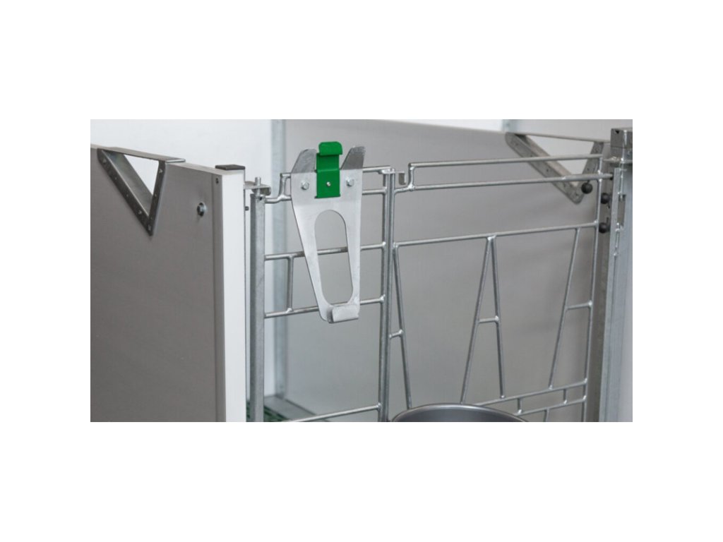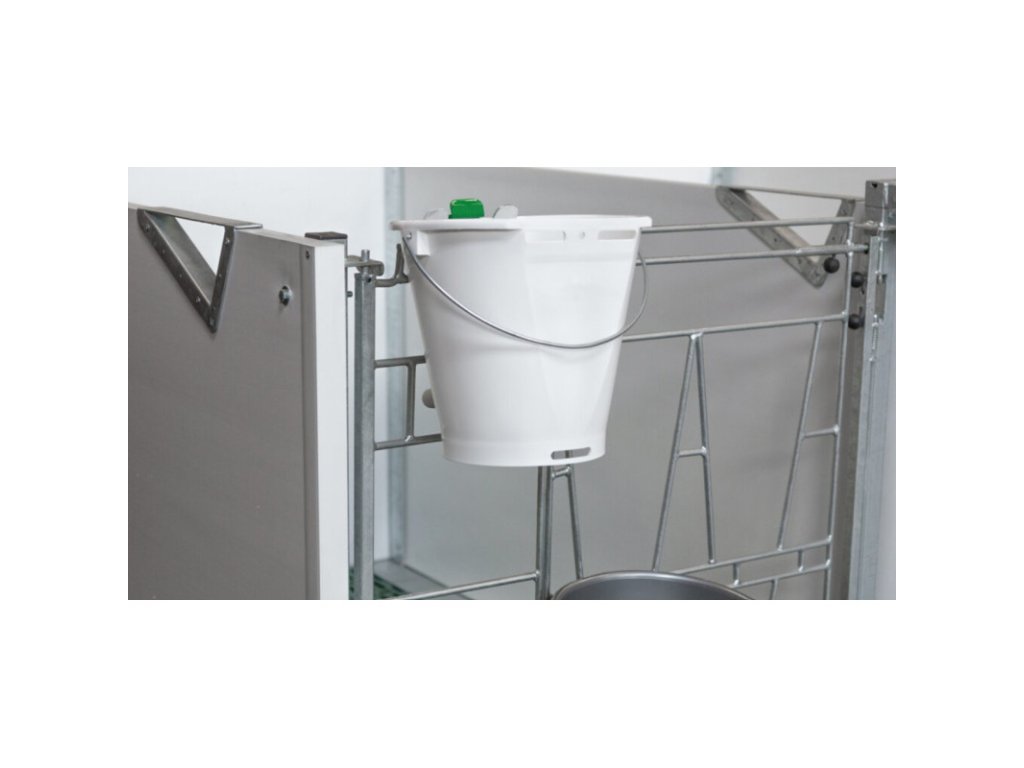 Unikátní držák pro napájecí kbelík, vhodný k ohrádkám bud pro telata Calfotel. Díky patentované sponě a novému designovému zpracování, je fixován jak spodní, tak i dolní okraj kbelíku, a tele s nim nemá možnost pohnout. Použití držáku vede k lepší hygieně a usnadní práci. Držák na kbelík je vhodný na všechny typy napájecích kbelíků pro telata dodávané firmou SELKO.