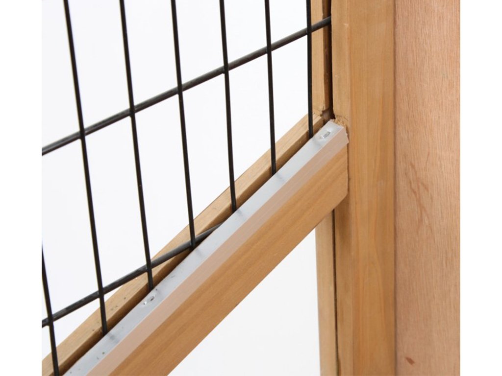 Dvoupatrová klec vyrobena ze dřeva má hmotnost cca 35 kg. Ve spodní části každého patra klece je umístěno plexisklo, které snižuje vypadávání hoblin z klece. Zbytek klece je pro dobrý výhled vyroben z kvalitní mřížky o síle drátu 2 mm s roztečí drátu 14 mm. Klec pro králíky a další hlodavce je určena pro umístění do vnitřních prostor. Dřevěná klec je povrchově ošetřena základním ochranným nátěrem. Pro delší životnost je třeba, jako u každého dřeva, ochranný nátěr obnovovat.