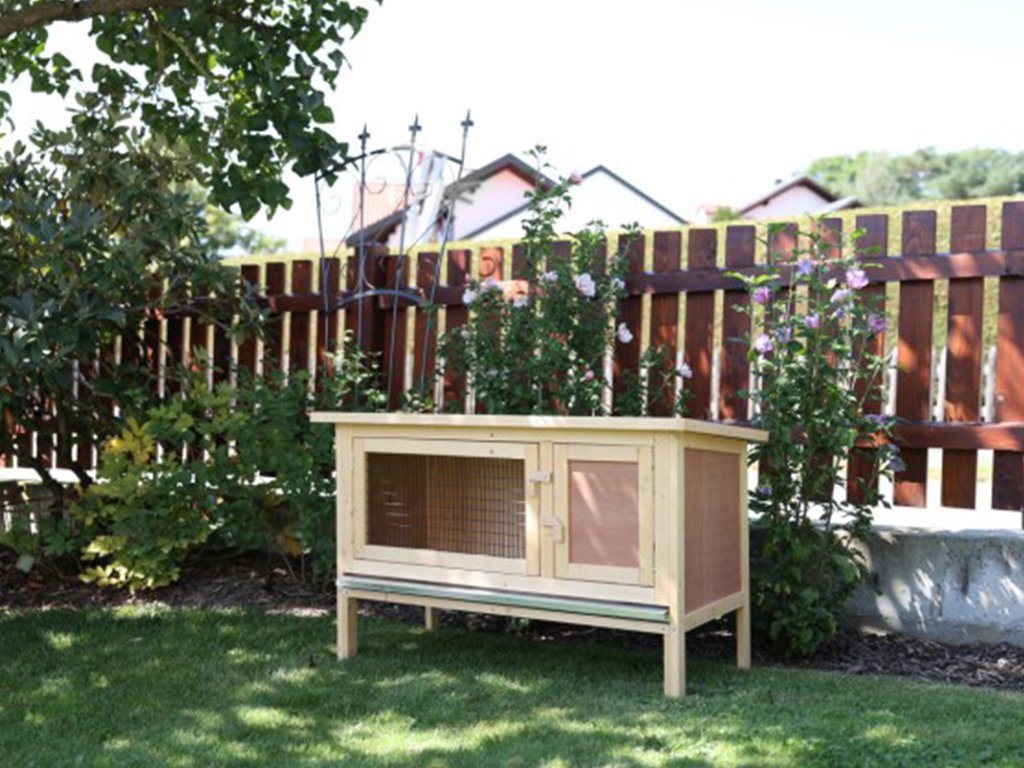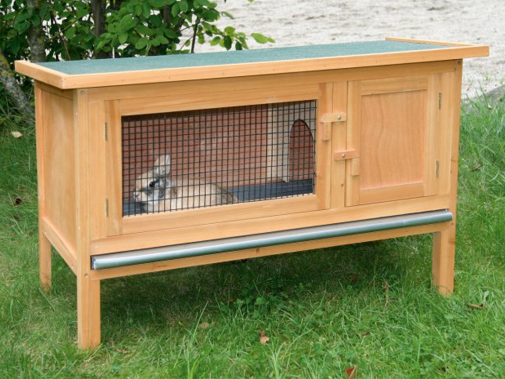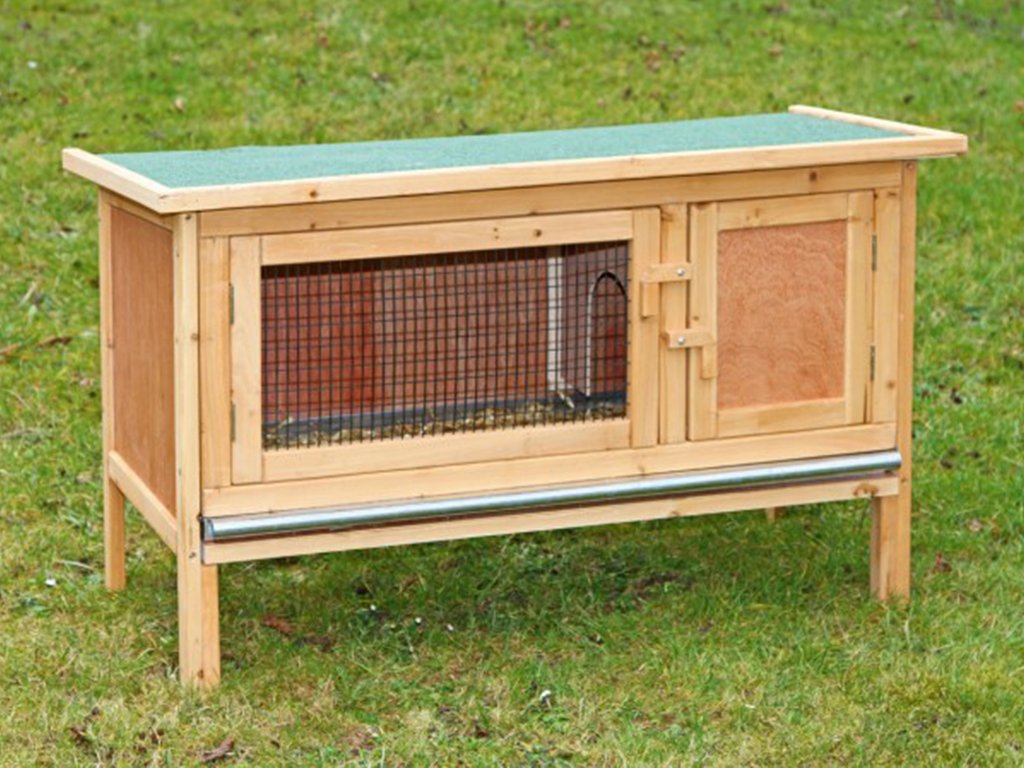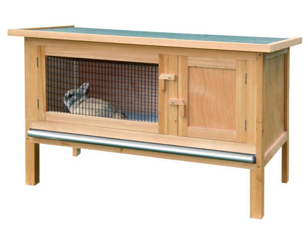 Dřevěná králíkárna pro jednoho králíka, zakrslého králíka nebo jiné malé hlodavce o rozměrech 100x45x62 cm. Jedná se o perfektní králíkárnu, která je vybavena vyjímatelným trusníkem pro snadné čistění. Bezproblémový přístup do králíkárny zajišťují dvoje dvířka a výklopná střecha.