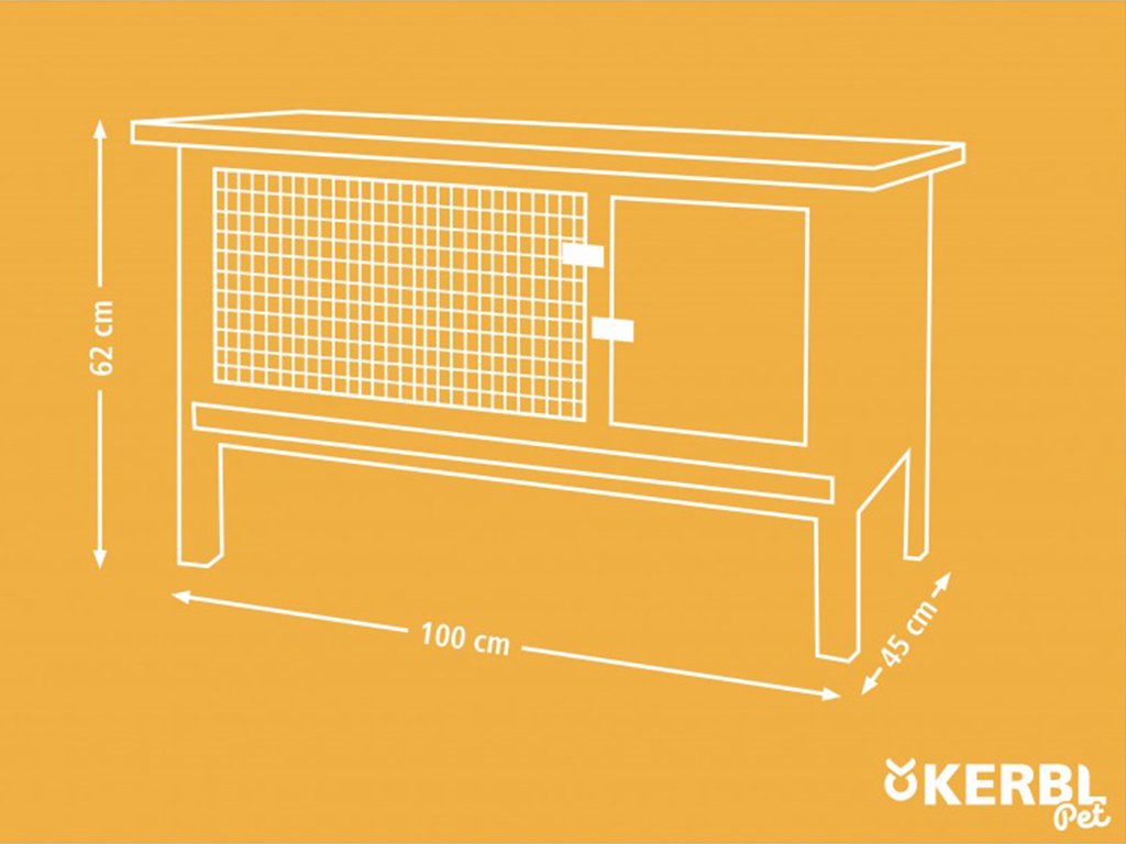 Vnější rozměry celé králíkárny jsou 100x45x62 cm, nejmenší vnitřní výška kotce je 40 cm, a tak poskytuje pohodlí pro jednoho králíka, zakrslého králíka, morčata nebo jiné malé hlodavce.