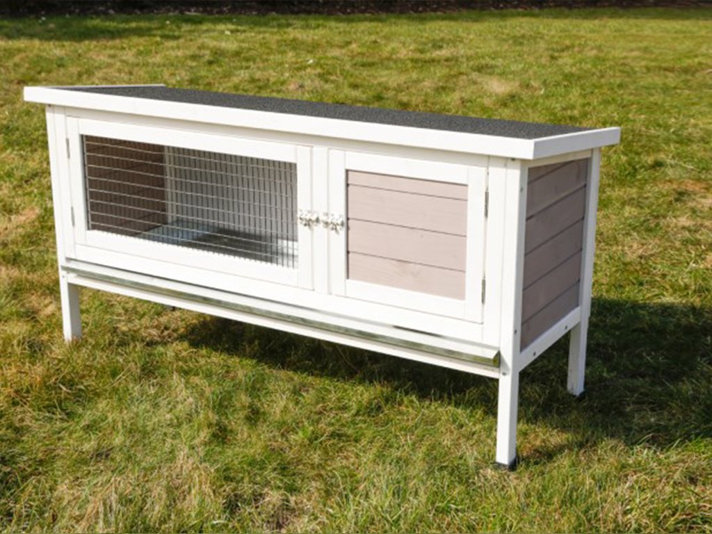 Dřevěná králíkárna pro jednoho králíka, zakrslého králíka nebo jiné malé hlodavce o rozměrech 116x45x62 cm. Jedná se o perfektní králíkárnu, která je vybavena vyjímatelným trusníkem pro snadné čistění. Bezproblémový přístup do králíkárny zajišťují dvoje dvířka a výklopná střecha. Králíkárnu snadno složíte pomocí přehledného obrázkového návodu (níže ke stažení).