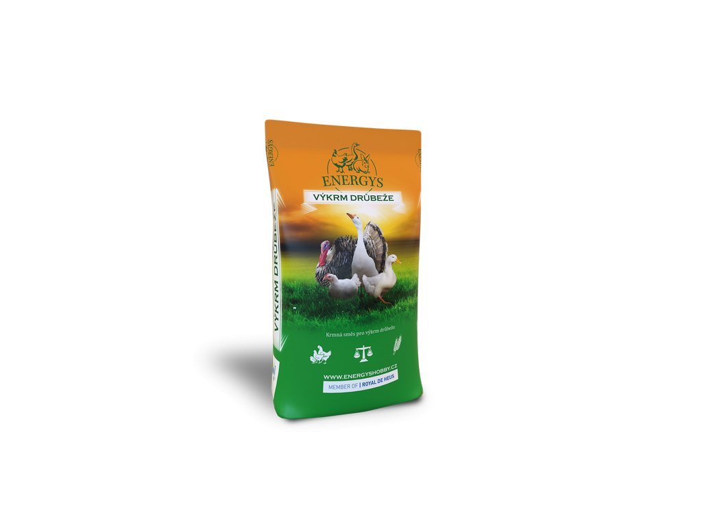 Pšenice, extrahovaný šrot sójový, toastovaný, kukuřice, slunečnicový loupaný extrahovaný šrot (moučka), uhličitan vápenatý, pšeničné otruby, lihovarské výpalky tmavé, dihydrogenfosforečnan vápenatý, kukuřičný lepek (gluten) krmný, rostlinný olej a tuk (slunečnicové semeno), chlorid sodný.