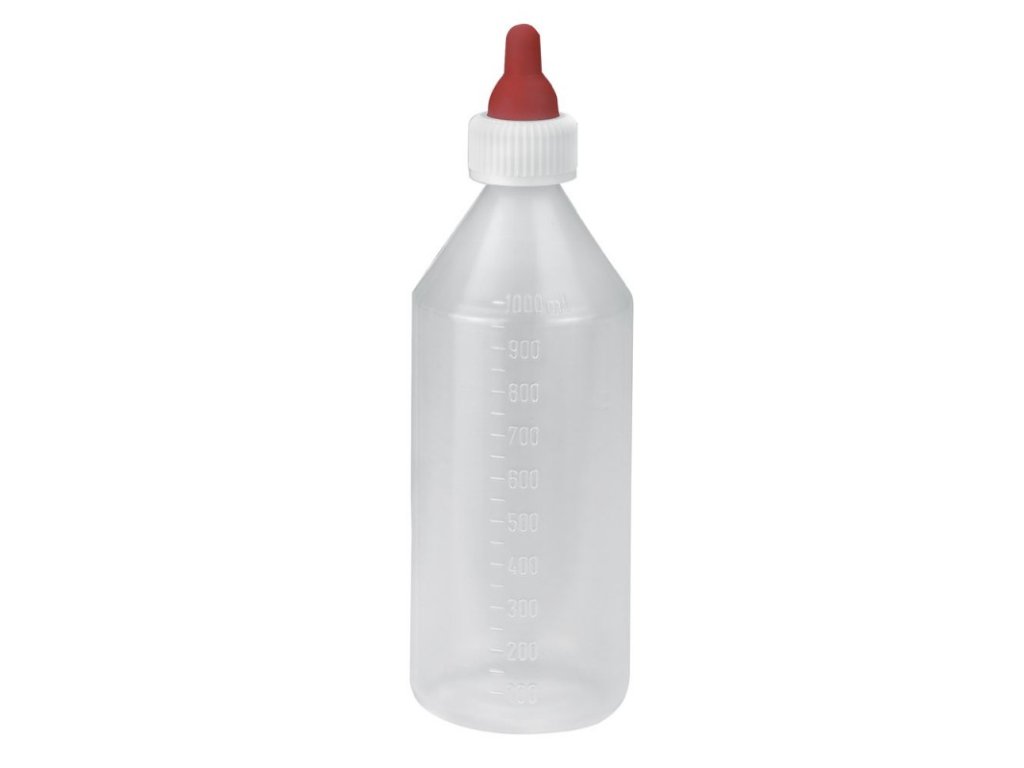 Krmná láhev pro jehňata a kůzlata s cucákem.