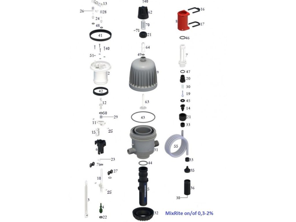 Oproti medikátorům Dosatron jsou u medikátorů Mixrite cenově dostupnější náhr. díly a jejich jednodušší výměna.