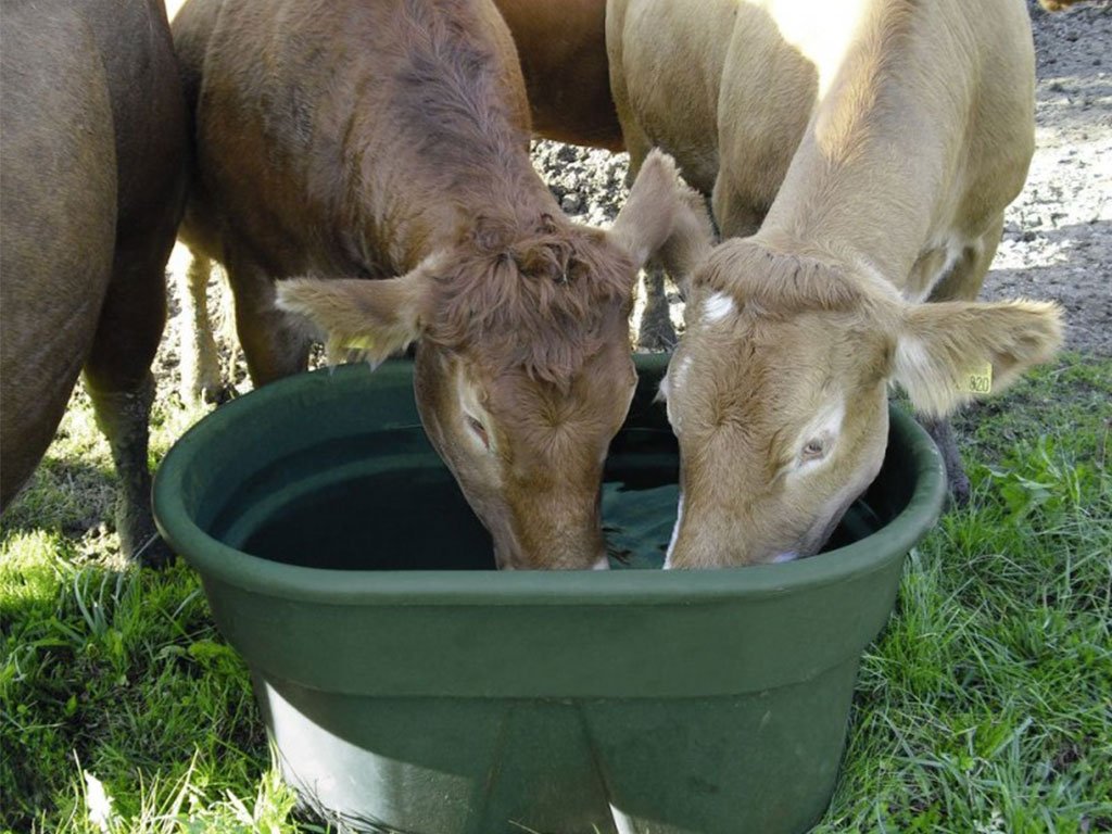 Napajedlo bez výpustě, pro skot, koně, ovce a kozy, stabilní napáječka pro venkovní využití, zpevněný lem napajedla, z UV stabilizovaného plastu, objem 150 litrů, rozměry 102x72x38 cm.