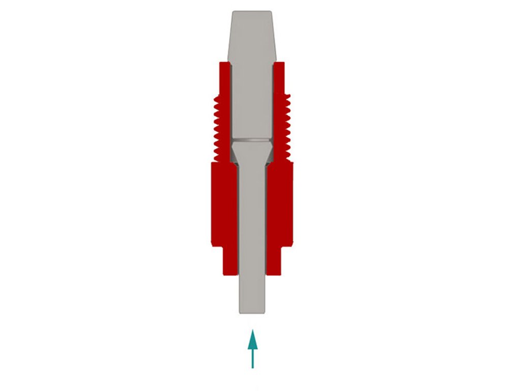 Niplový ventil s kolíkem pohybujícím se ve vertikálním směru – rozsah 180° ve směru nahorů a dolů. Vnější část je vyrobena ze speciálního tvrdého plastu, vnitřní část je vyrobena z nerezové oceli a instalace se provádí na šroubováním do otvoru velikosti 8,8mm za pomoci závitu na niplovém ventilu (M10x1mm). Niplový ventil poskytuje průtok vody 0,70 až 0,80 ml za 1 minutu.
