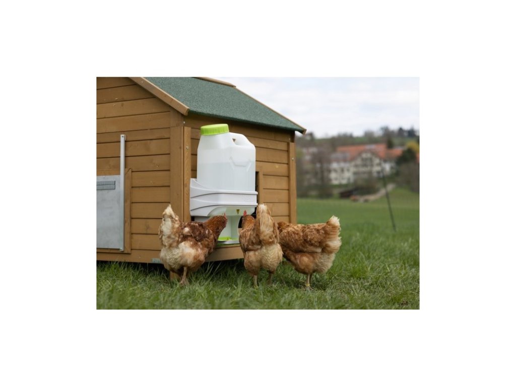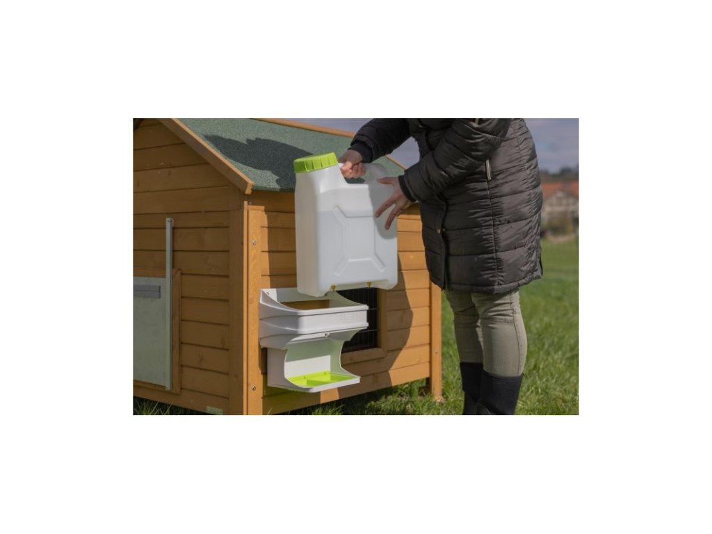 Niplová nápáječka pro drůbež SmartCoop zajistí slepicím stálý a bezpečný přístup k čisté pitné vodě. Po otočení odkapávací misky lze použít i pro kuřata. Napaječka je vyrobena z kvalitních materiálů a má velmi hladký chod umožňující drůbeži pití vody zcela přirozeným způsobem. Kanystr je ze zdravotně nezávadného materiálu a pohodlně se plní a čistí.