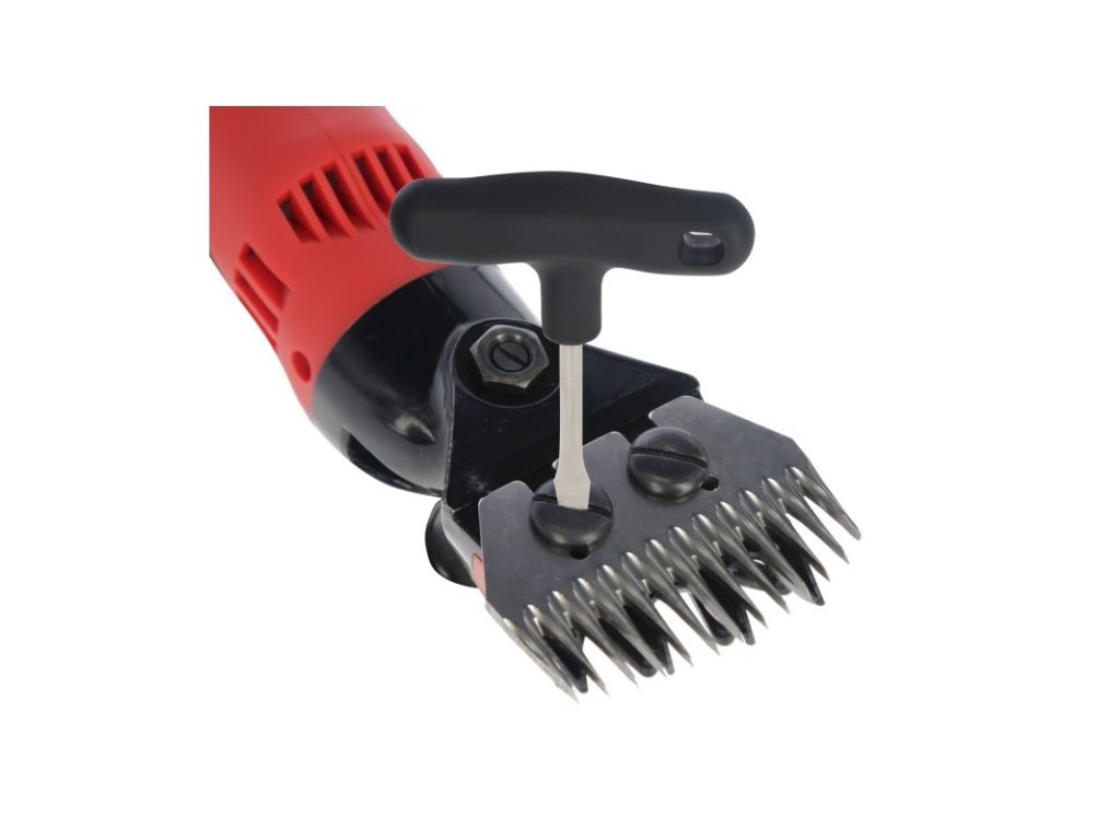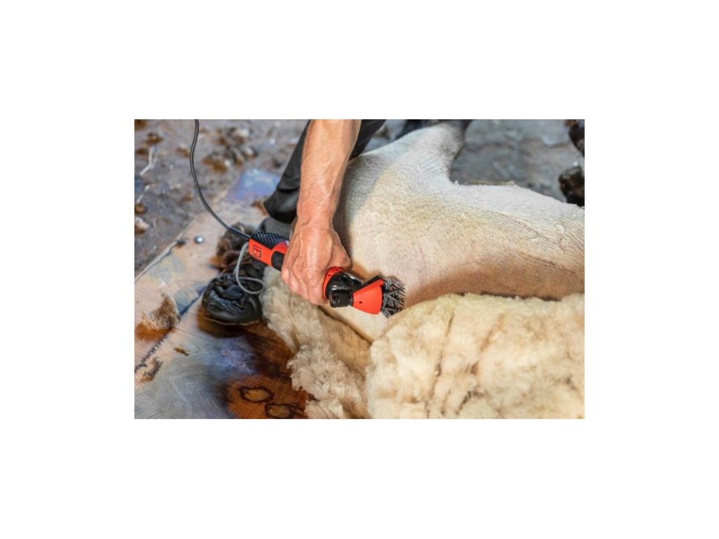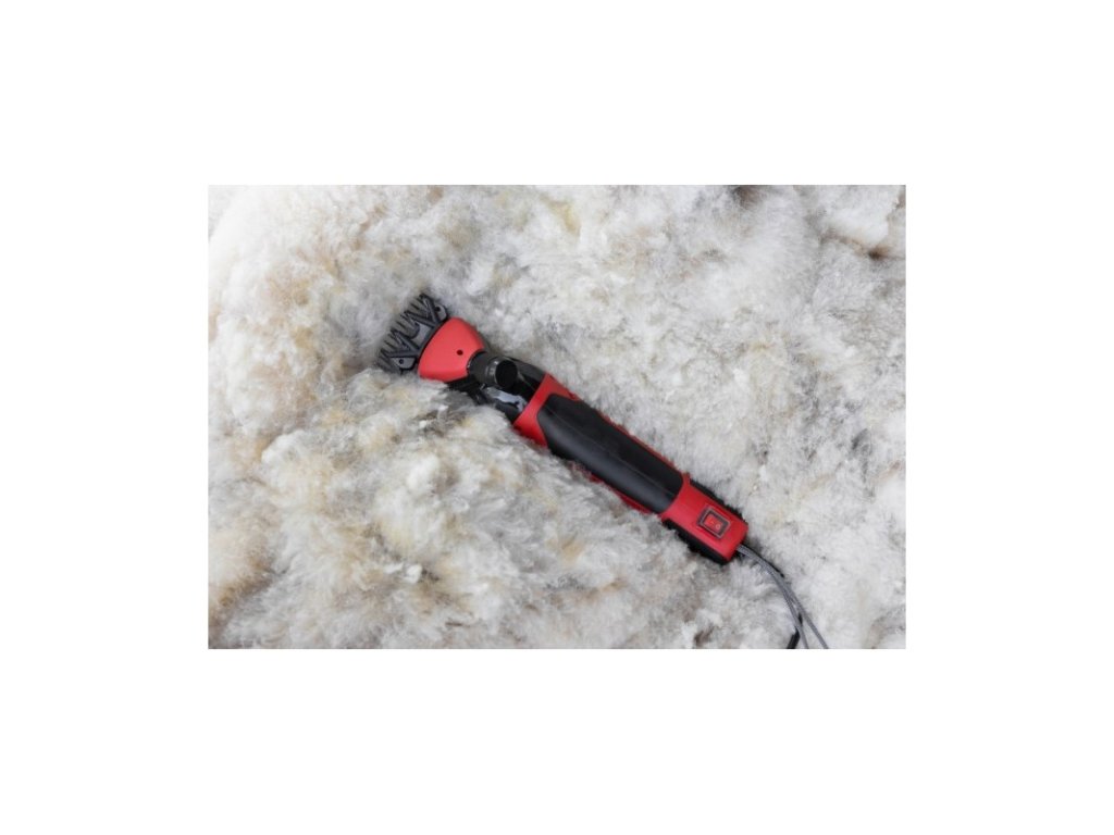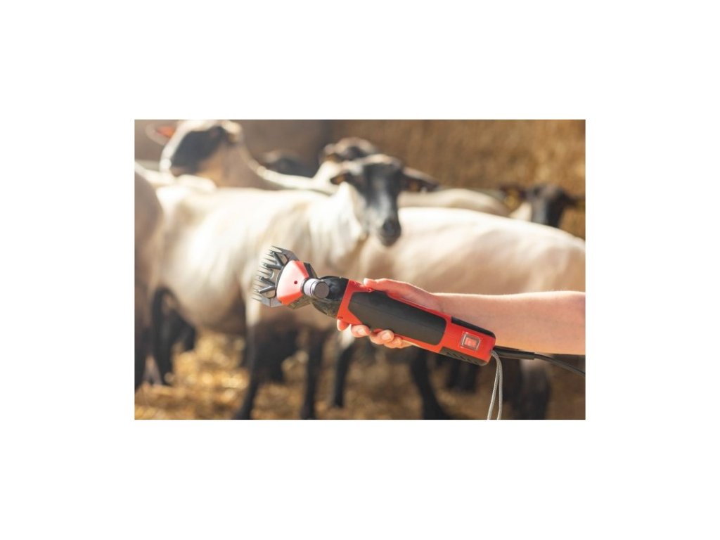 Elektrický střihací strojek na ovce FarmClipper Profi s plynule nastavitelnou rychlostí. Na maximální výkon FarmClipper dosahuje 350 W a 2400 ot./min. Strojek lze nastavit a přizpůsobit pro každé zvíře a jeho srst = ideální střih! Díky kování z prémiových nožů je výsledkem stříhání FarmClipperem velmi čistý střih. Dokonce i silně znečištěná zvířata jsou ostříhaná profesionálně, strojek po sobě nezanechává žádné zbytkové chlupy. Má atraktivní a ergonomický tvar. Vyvážené těžiště zajišťuje nepřetržité stříhání více zvířat, nemusíte strojek vypínat a nechat odpočinout. Pogumovaná protiskluzová horní část rukojeti zajišťuje bezpečné uchopení strojku. Díky silnému motoru může být použit pro dlouhou dobu.