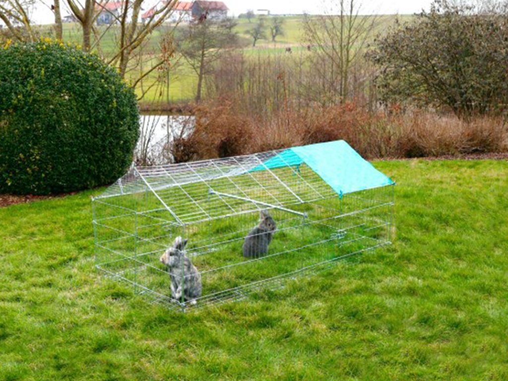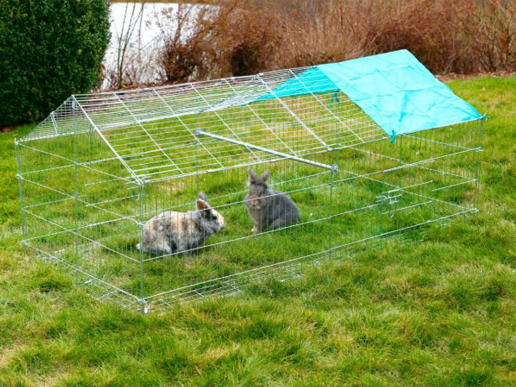 Venkovní výběh je na spodních hranách vybaven zábranou proti podhrabání a vrchní krytí naopak zabraňuje zvířatům výběh přeskočit. Výběh rovněž tvoří spolehlivou ochranu pro zvířata uvnitř výběhu před napadením psy, kočkami, kunami, ale i dravci. Své mazlíčky tak budete moci nechat na trávě na čerstvém vzduchu naprosto bez obav. Výběh během chvilky smontujete a můžete na něj připevnit krycí plachtu, která králíky bude chránit před přímím sluncem.
