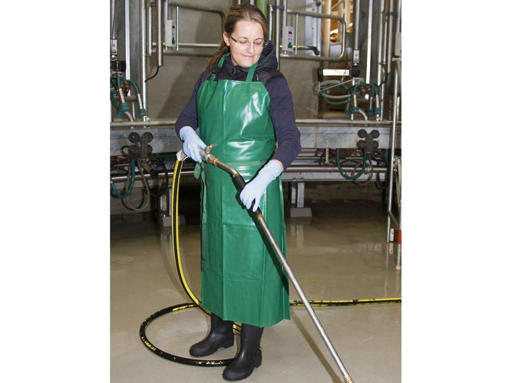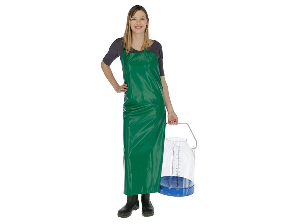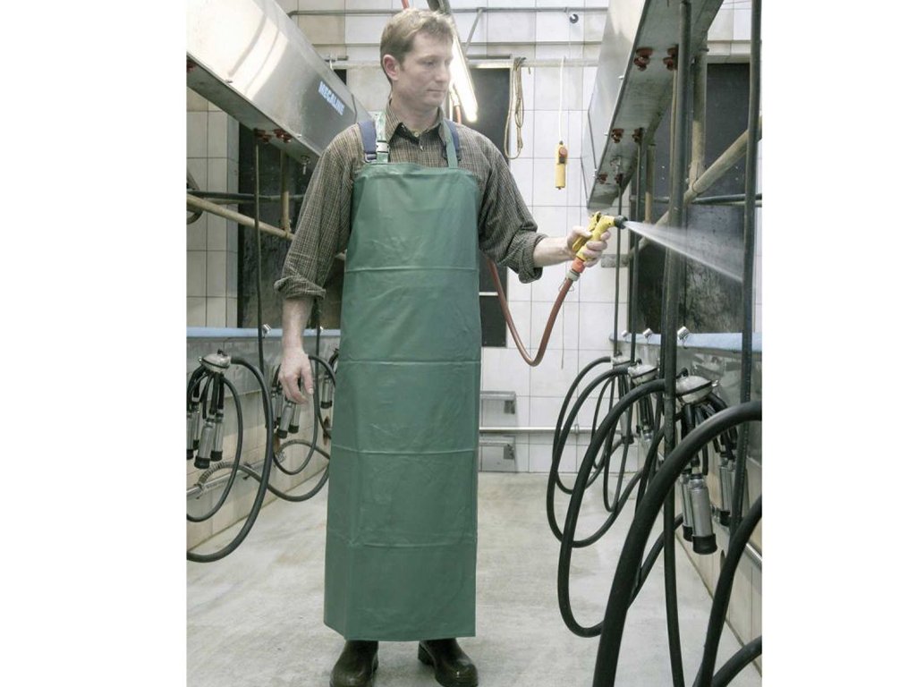 Zástěra na dojení a mytí, vhodná i pro zemědělské, domácí a zahradní práce, voděodolný materiál proti vlhkosti a vodě, extrémně odolná proti roztržení a prasknutí, vysoká teplotní odolnost -25°C až +70°C, praktické zapínání u krku přes nastavitelnou přezku, rozměr 120x80 cm.