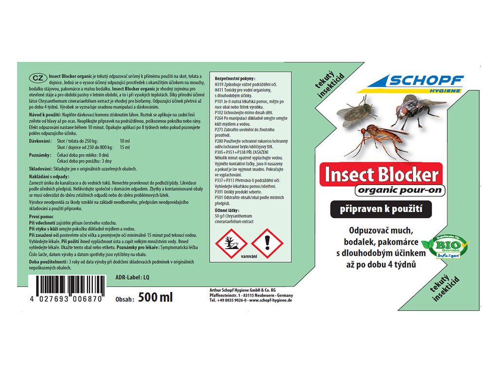 BIO roztok k odpuzování much SCHOPF INSECT BLOCKER ORGANIC POUR-ON 500ml