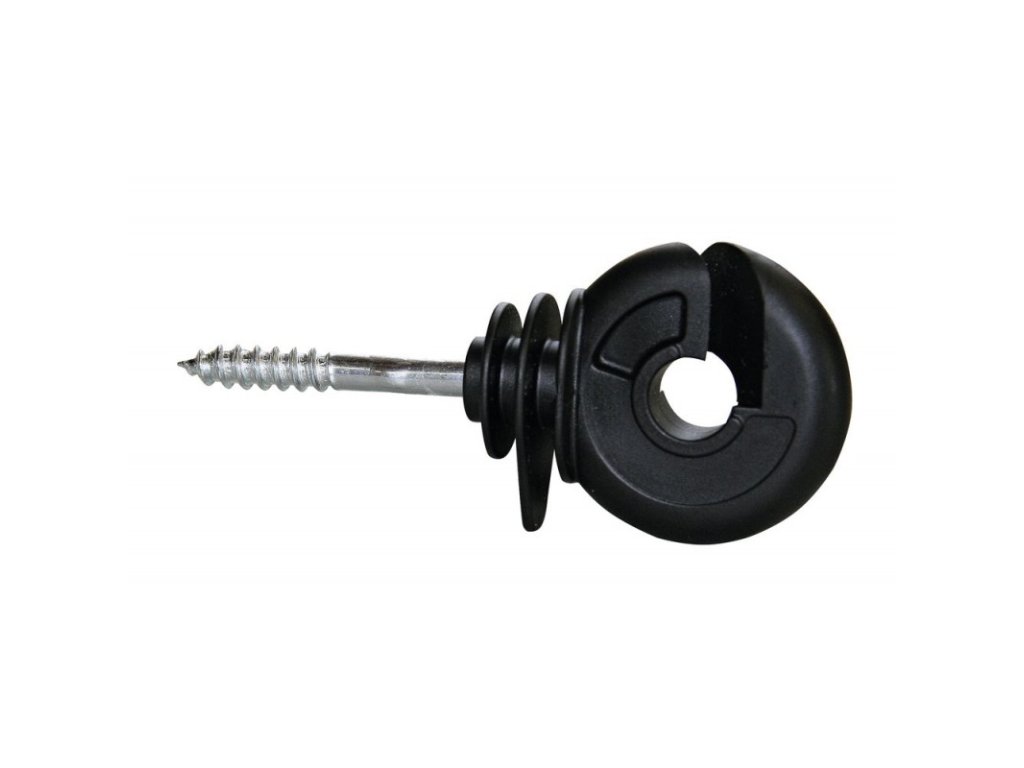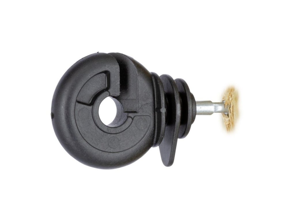 Kruhový izolátor s vrutem a výztuží pro elektrické ohrady. Varianta s výstuží 5,3 mm. Pozinkovaný vrut.