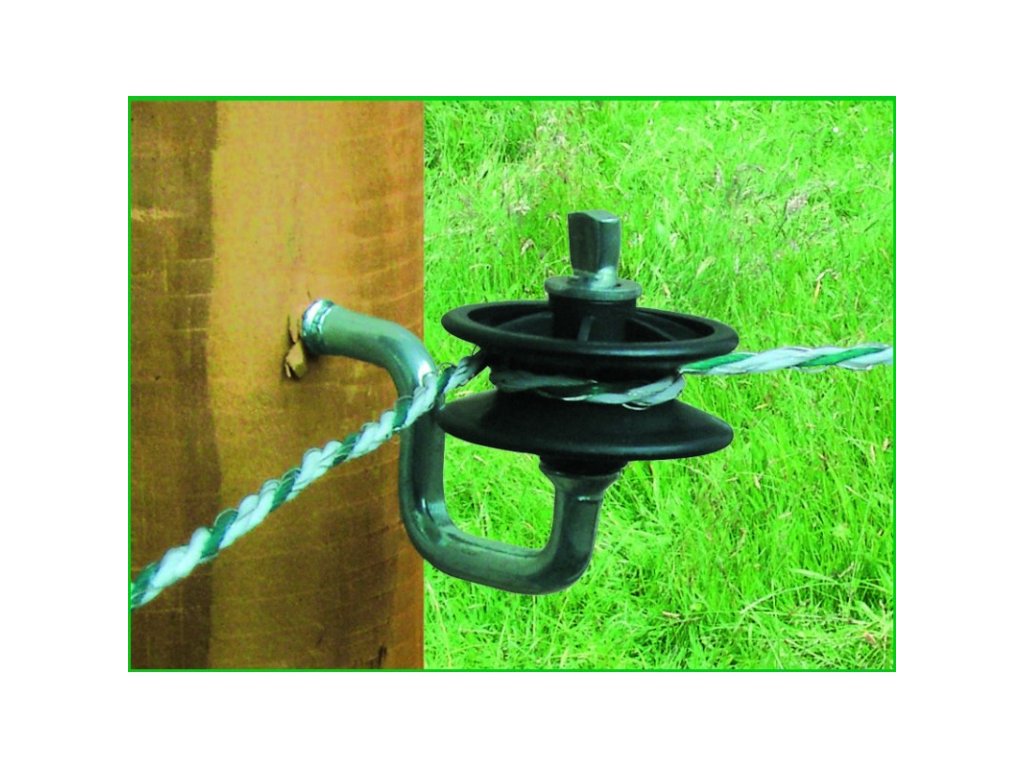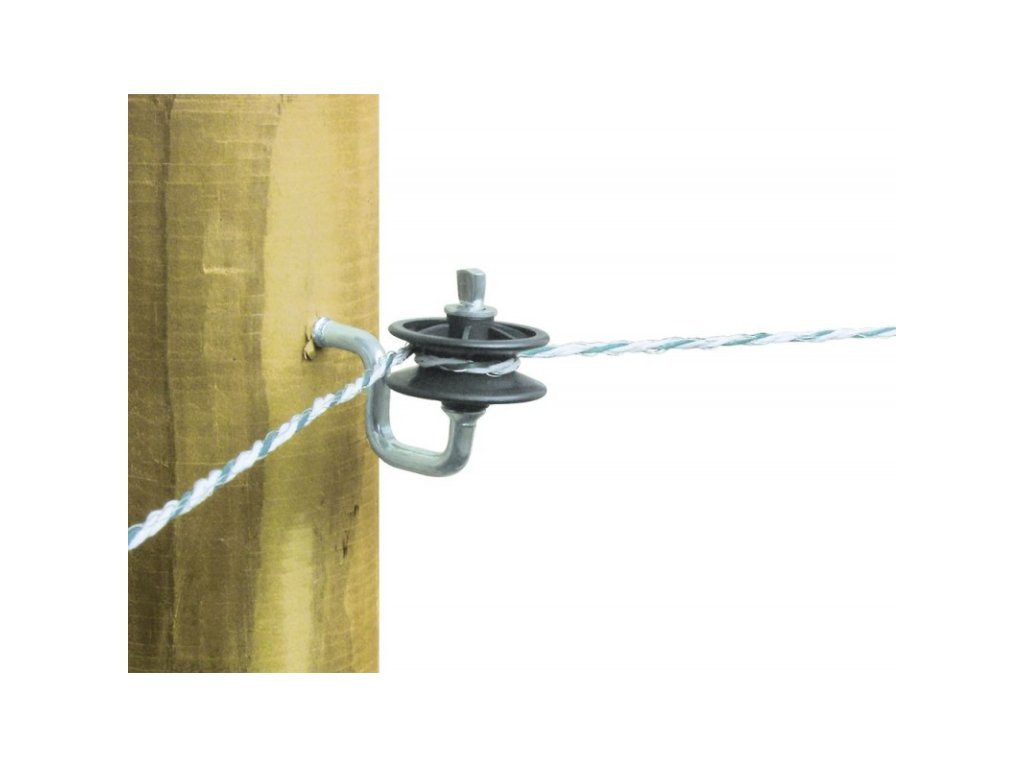 Zesílená verze izolátoru s rolnou určený pro uchycení do dřevěného kůlu pomocí pozinkovaného vrutu. Vhodné do ohrad, kde je nutné vypnout delší vodiče i přes roh oplocení.