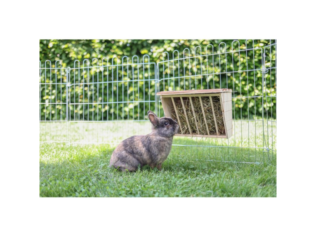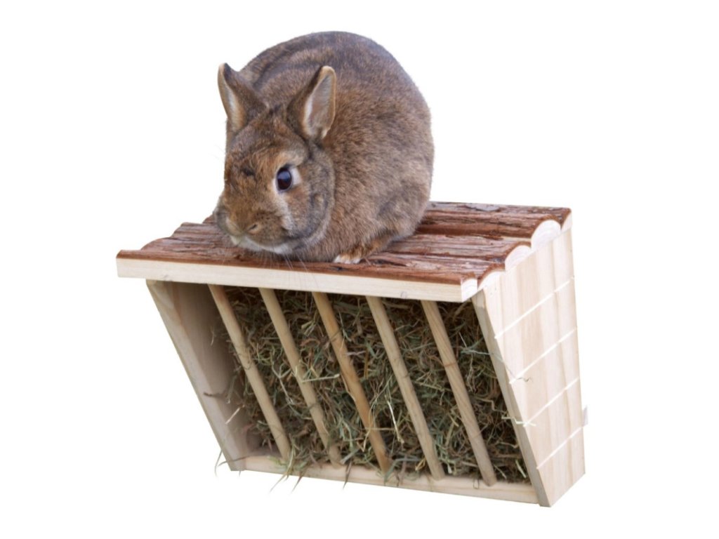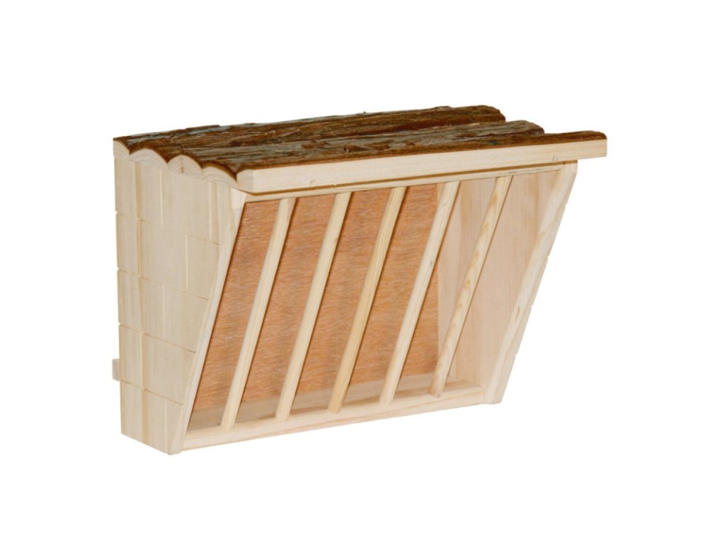 Hezké dřevěné jesle na seno pro králíka nebo morče s přírodní stříškou.