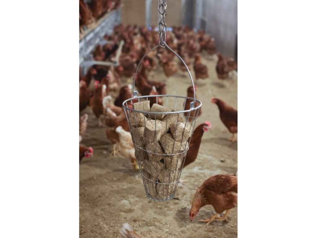 Kruhové jesle na seno ve tvaru kbelíku, vhodné pro ovce, kozy a prasata.
