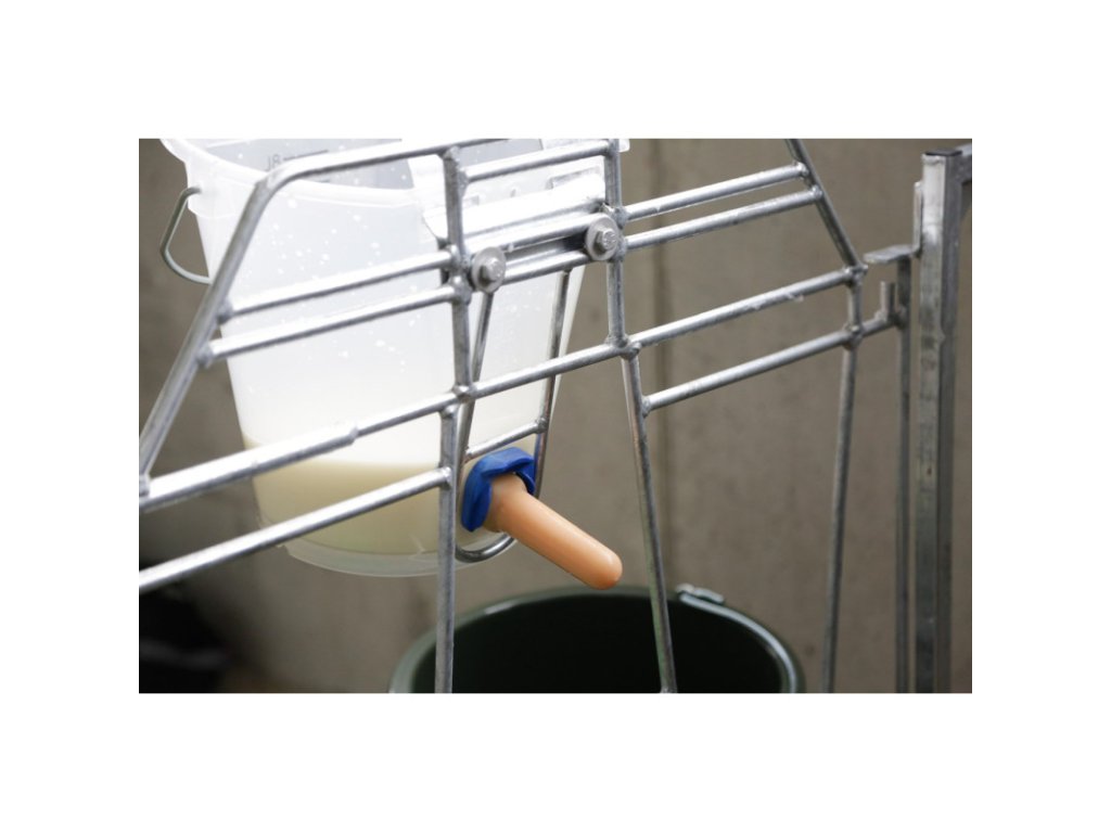Držák k napájecímu kbelíku se používá k upevnění napájecích kbelíků na ohrádku bud pro telata. Držák je vyrobený z kvalitní pozinkované oceli.