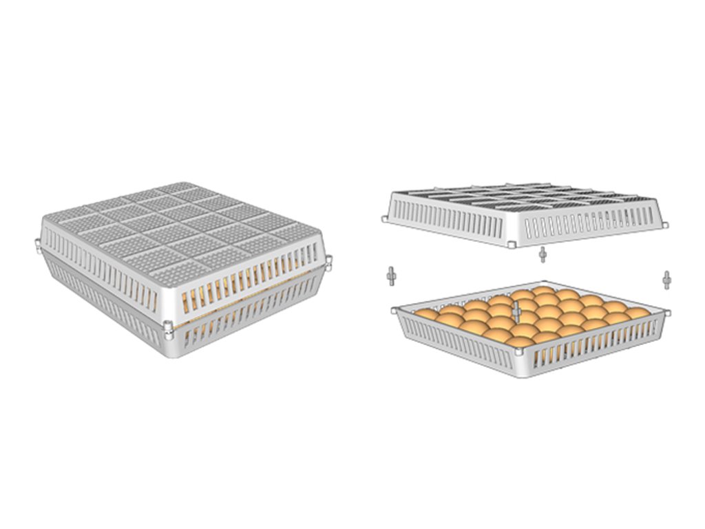 K umístění vajec před vylíhnutím ze skořápky, vhodný do líhní CIMUKA série CT, s kapacitou 30ks slepičích vajec, snadná manipulace přes víko košíku, vysoká cirkulace vzduchu - prodyšná konstrukce, z omyvatelného plastu.