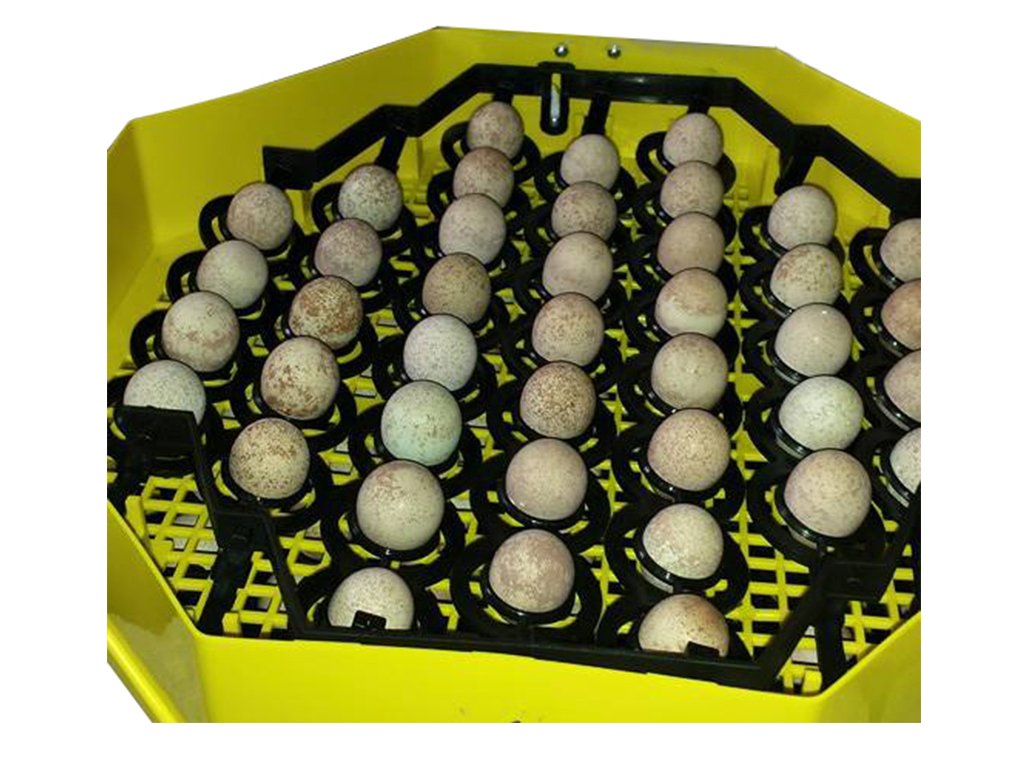 Otočný rošt s otvory o průměru 28 mm je ideální pro velikost bažantích vajec a v jednu chvíli do něj umístíte až 41 ks bažantích vajec. Bažantí vajíčka se do otočného roštu vkládají vždy úzkým koncem směrem dolů.