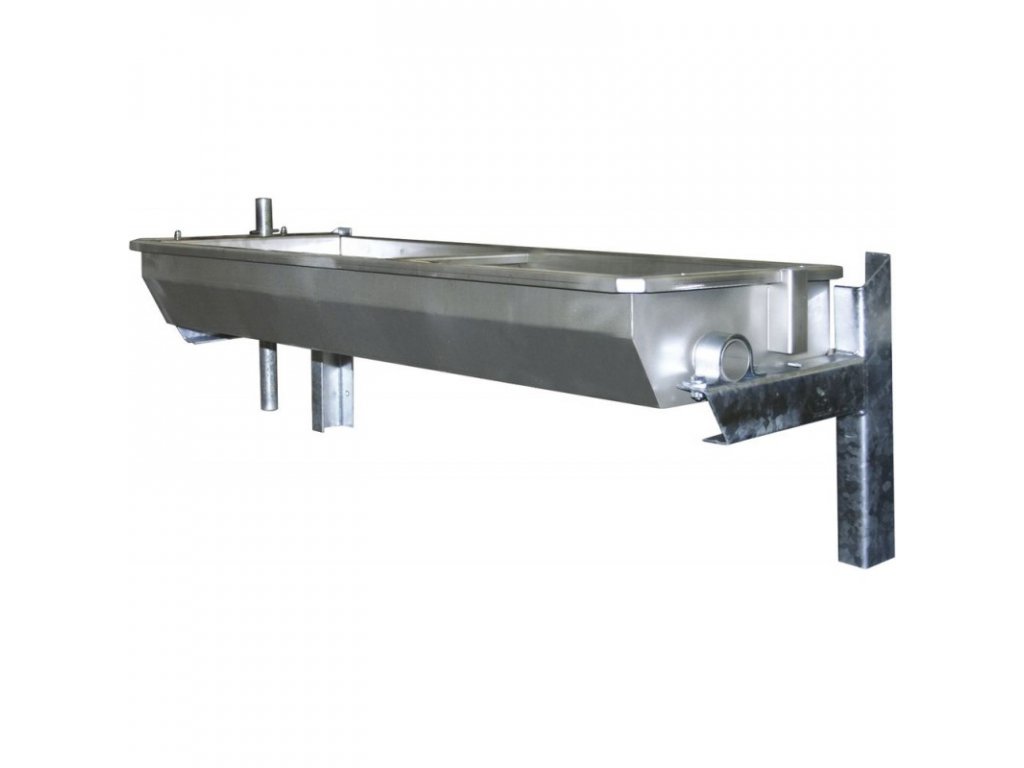 Robustní výklopné mělké napájecí koryto vyrobené z nerezové oceli. Tento typ koryta je s držákem pro upěvnění na stěnu.