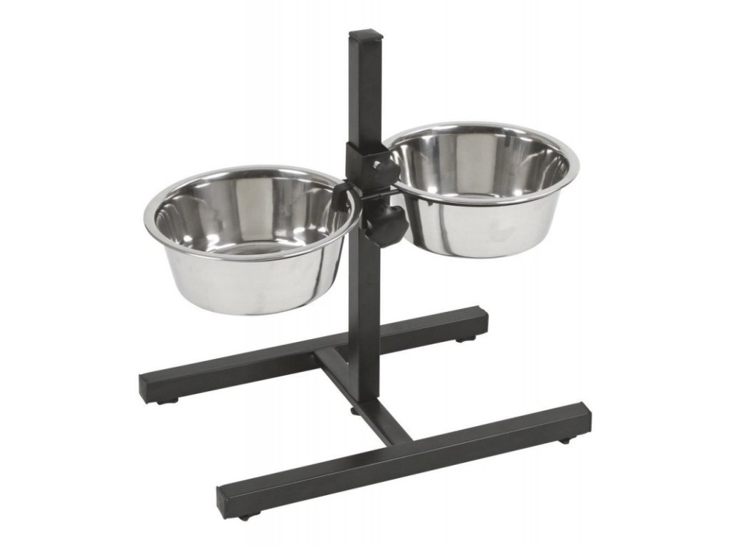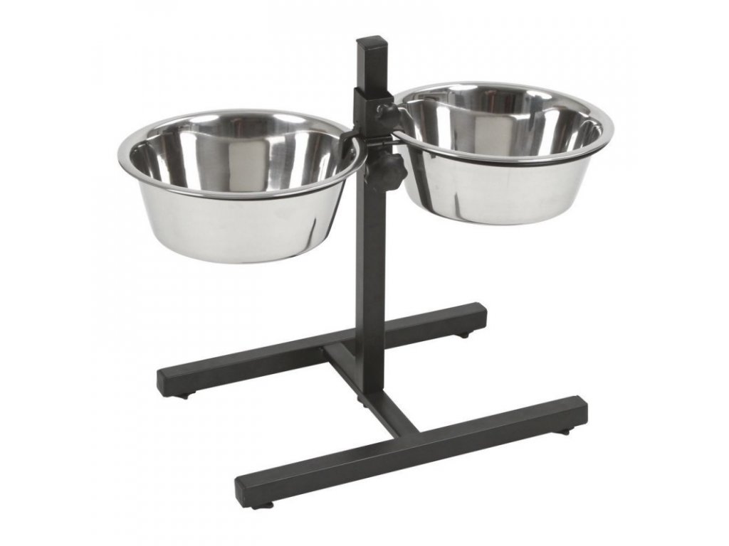 Stojan + 2 misky z nerezu, 2x2800 ml, černá