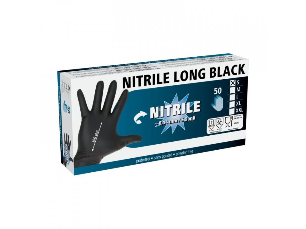 Jednorázové rukavice nitrilové černé, dlouhé 30 cm