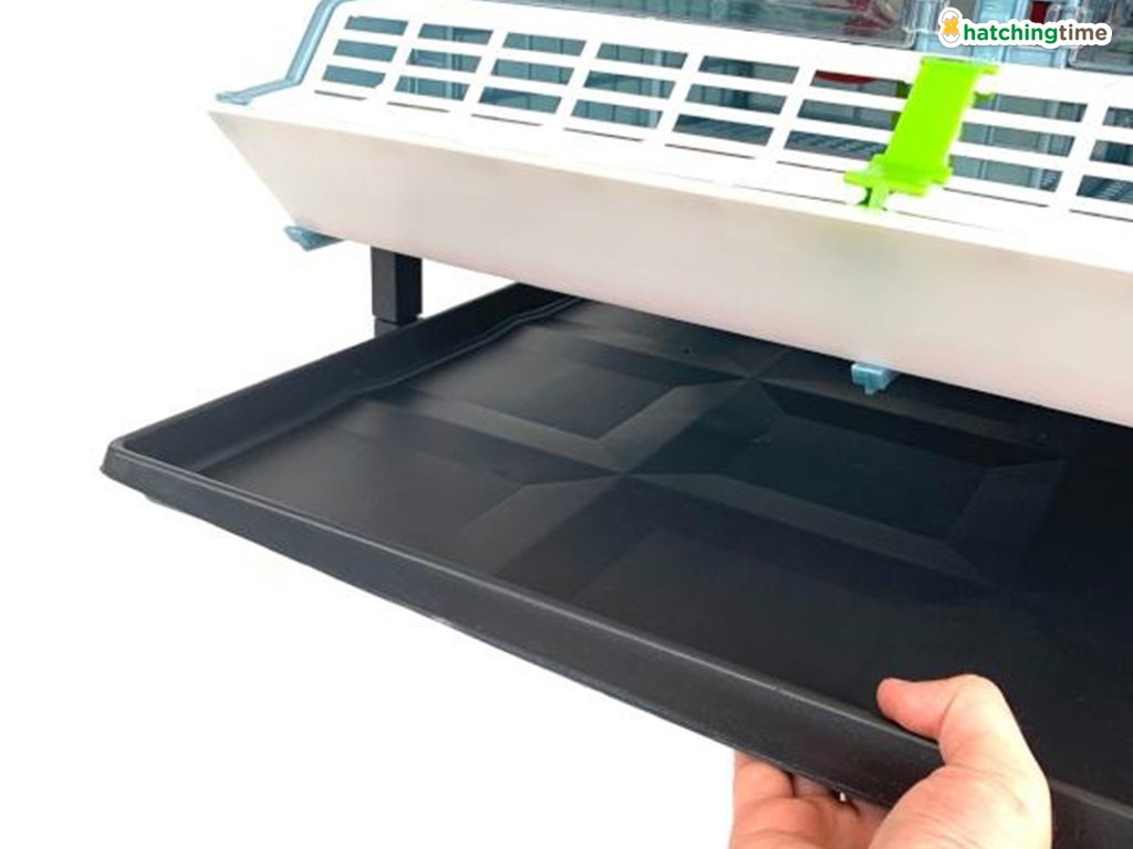Rozměry složené dvoupatrové odchovny včetně koleček, nádržky na vodu, ohřevných jednotek a krmítek jsou 104 x 60 x 91 cm.
