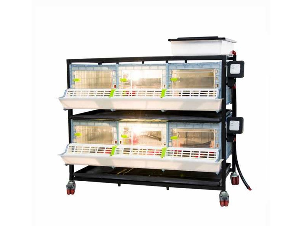 Odchovna drůbeže vhodná k chovu až pro 90ks kuřat s patentovanou technologií Comfortplast o rozměrech 104 x 60 x 91 cm. Jedná se o 2 patrovou klec s 3 oddíly, které jsou vybaveny ohřevnou lištou s nastavitelným termostatem a výstupem na žárovku, krmítky s mřížkou proti plýtvání krmiva, napáječkami s přívodem vody z 8 litrového zásobníku.