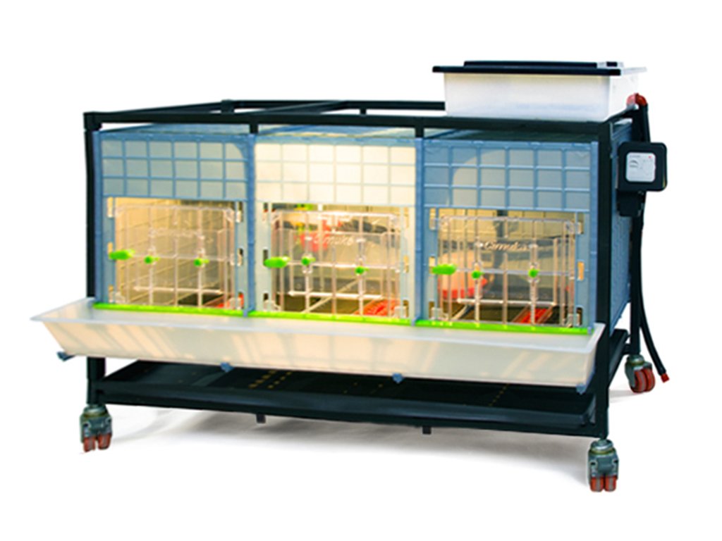 Odchovna drůbeže vhodná k chovu pro 40 až 45ks kuřat s patentovanou technologií Comfortplast o rozměrech 104 x 64 x 73 cm. Jedná se o 1 patrovou klec s 3 oddíly, které jsou vybaveny ohřevnou lištou s nastavitelným termostatem a výstupem na žárovku, krmítky s mřížkou proti plýtvání krmiva, napáječkami s přívodem vody z 8 litrového zásobníku.