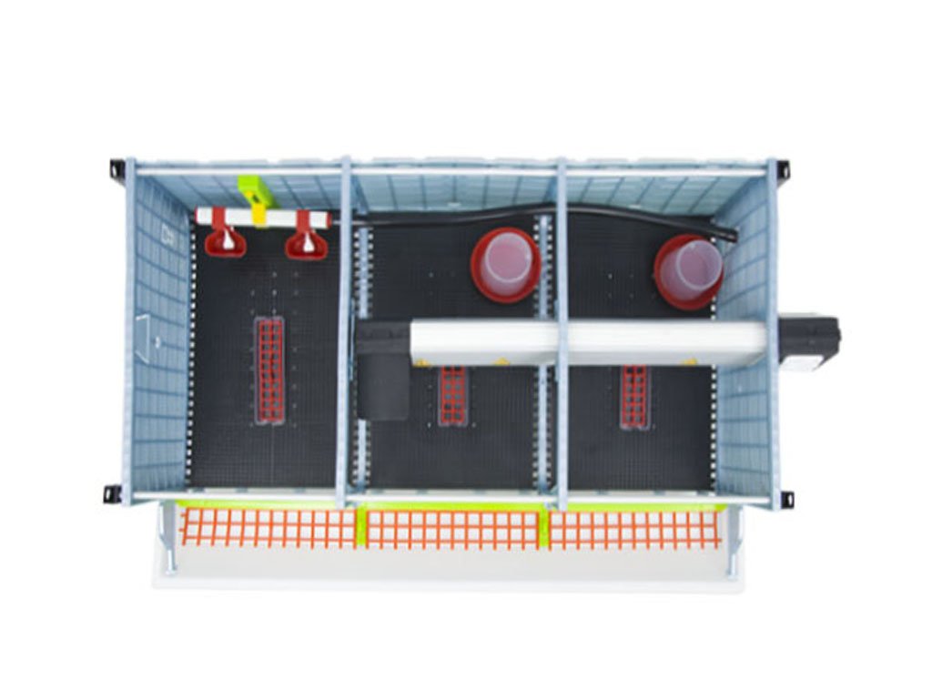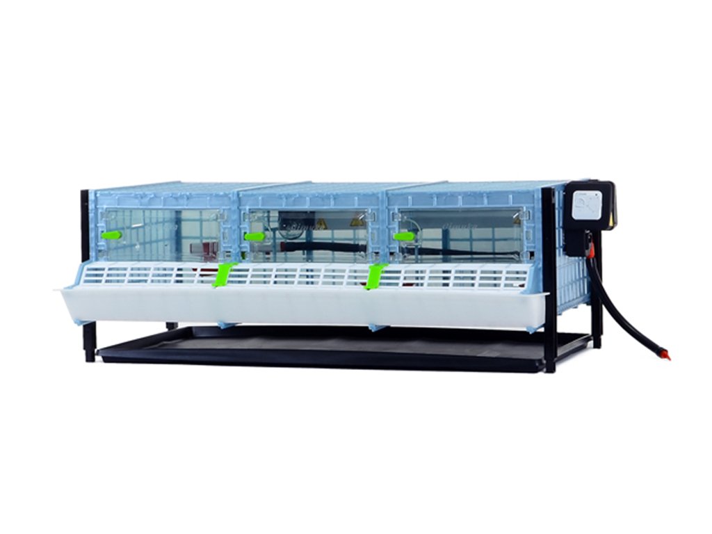 Přídavné patro odchovny drůbeže vhodné k chovu pro 40 až 45ks kuřat s patentovanou technologií Comfortplast o rozměrech 104 x 60 x 35 cm. Jedná se o 1 patrovou klec bez rámu s 3 oddíly, které jsou vybaveny ohřevnou lištou s nastavitelným termostatem a výstupem na žárovku, krmítky s mřížkou proti plýtvání krmiva, napáječkami s přívodem vody bez zásobníku.