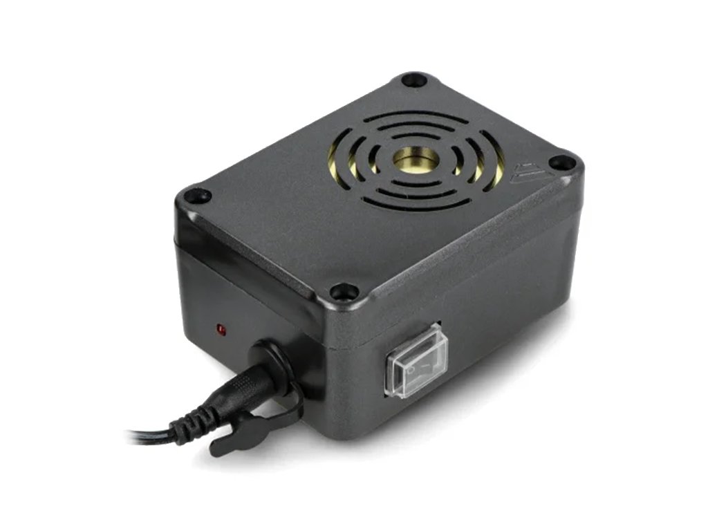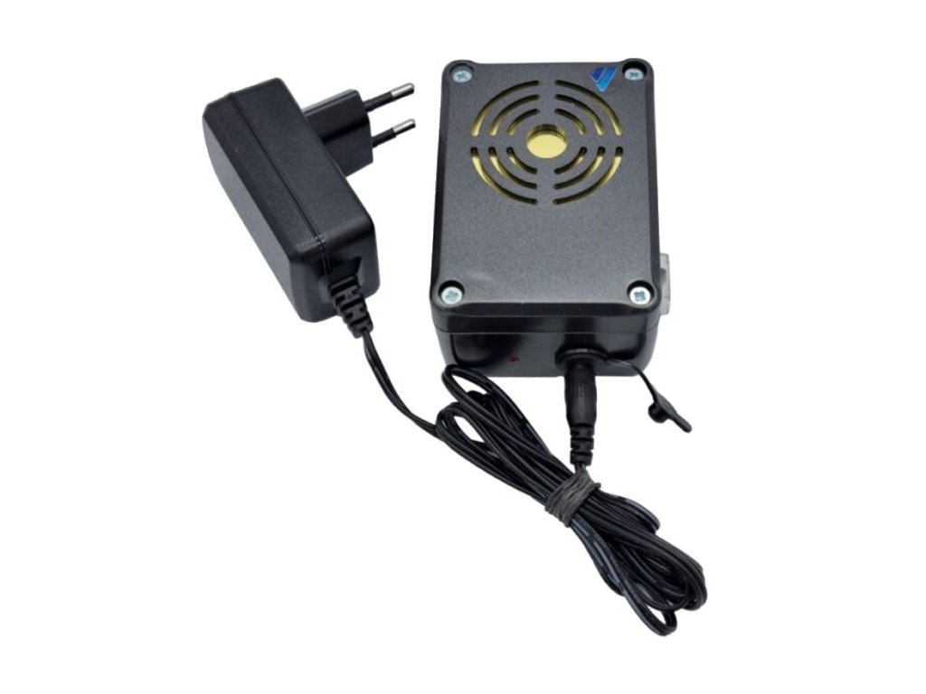Zařízení je napájeno z 2x dobíjecí baterie Li-Ion 2000mAh (4000mAh) s výdrží až 200 dní, která se dobíjí 12V adaptérem (součástí balení). Dobíjecí zásuvku lze uzavřít gumovou krytkou, které ji chrání před nepřízní počasí. Odpuzovač disponuje praktickým vypínačem v ochranném pouzdru, díky kterému jej můžete jednoduše vypnout a zapnout bez nutnosti vypojit adaptér ze sítě.