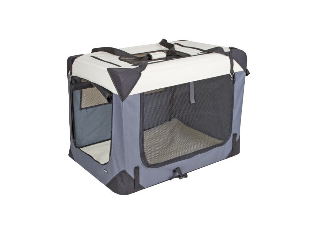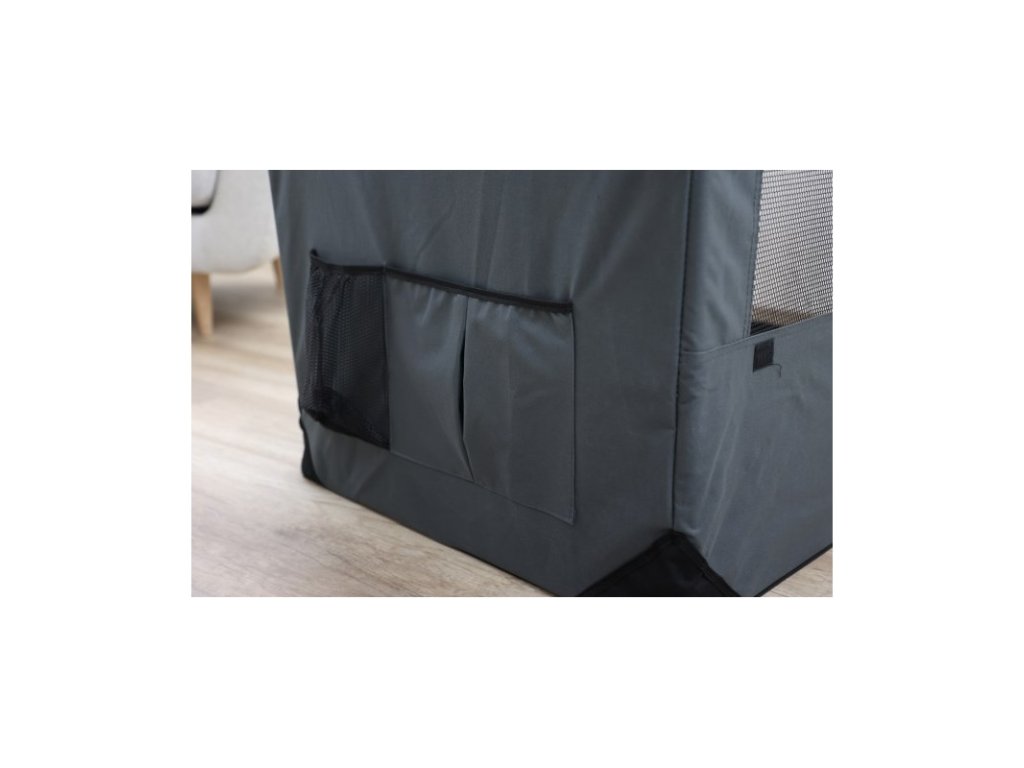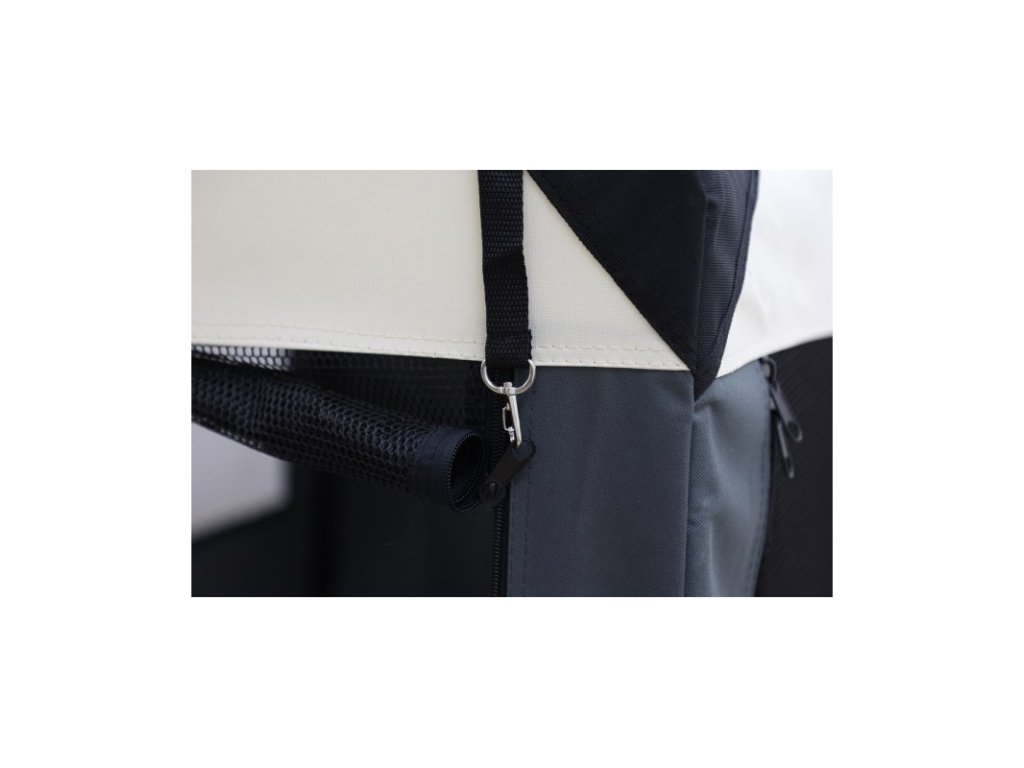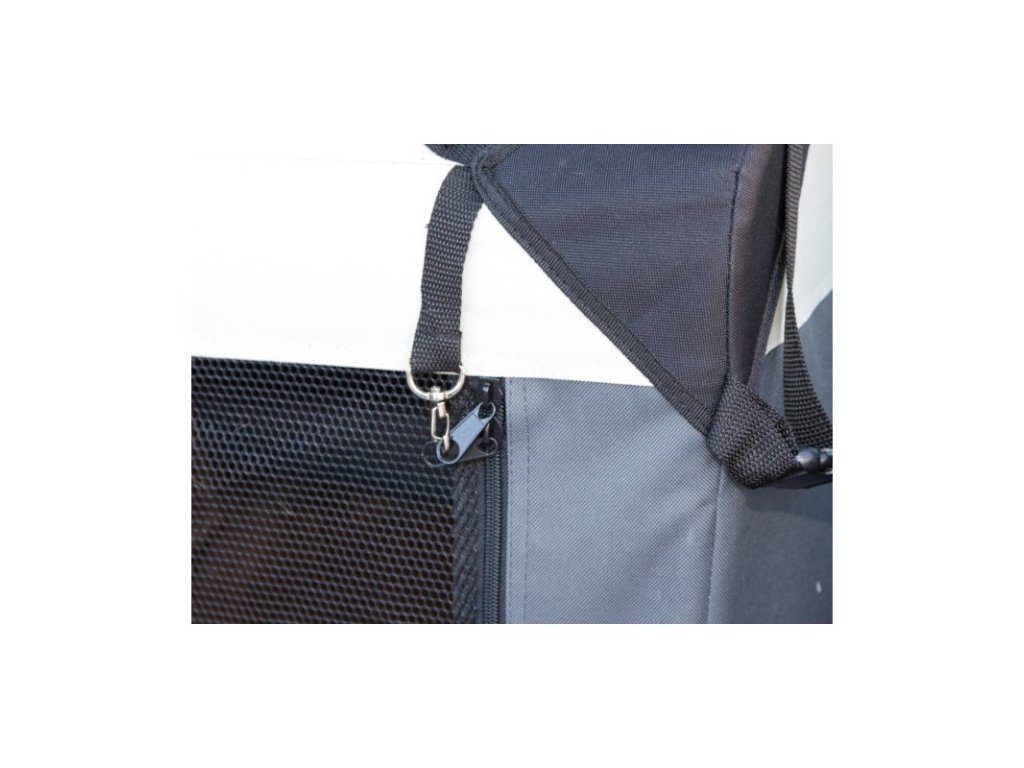 Přepravní box neboli kenelka Journey. Velmi variabilní a praktická látková přepravka a stan pro psa v jednom. Transportní box s možností otevření zpředu, z boku i shora. je vyztužen kovovým rámem a lze jej snadno a rychle opakoně složit i rozložit. Chovatelé psů a koček jej rádi využívaji jako porodnici pro štěňata či koťata.