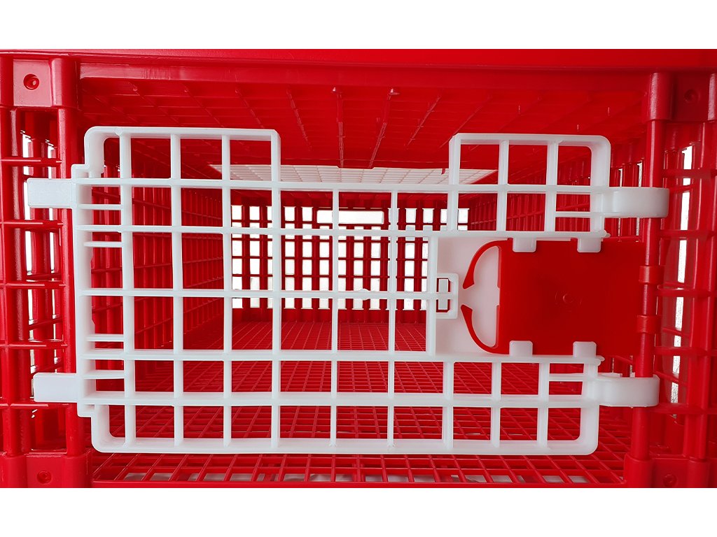 Manipulace s drůbeží bude s touto přepravkou naprosto snadná. Přepravka je totiž vybavena hned dvěma vstupy. Využít můžete podle Vašich potřeb horní posuvná dvířka nebo boční odklápěcí dvířka. Oba vstupy jsou samozřejmě zajištěny pojistkou, aby nemohlo dojít k samovolnému otevření přepravky.
