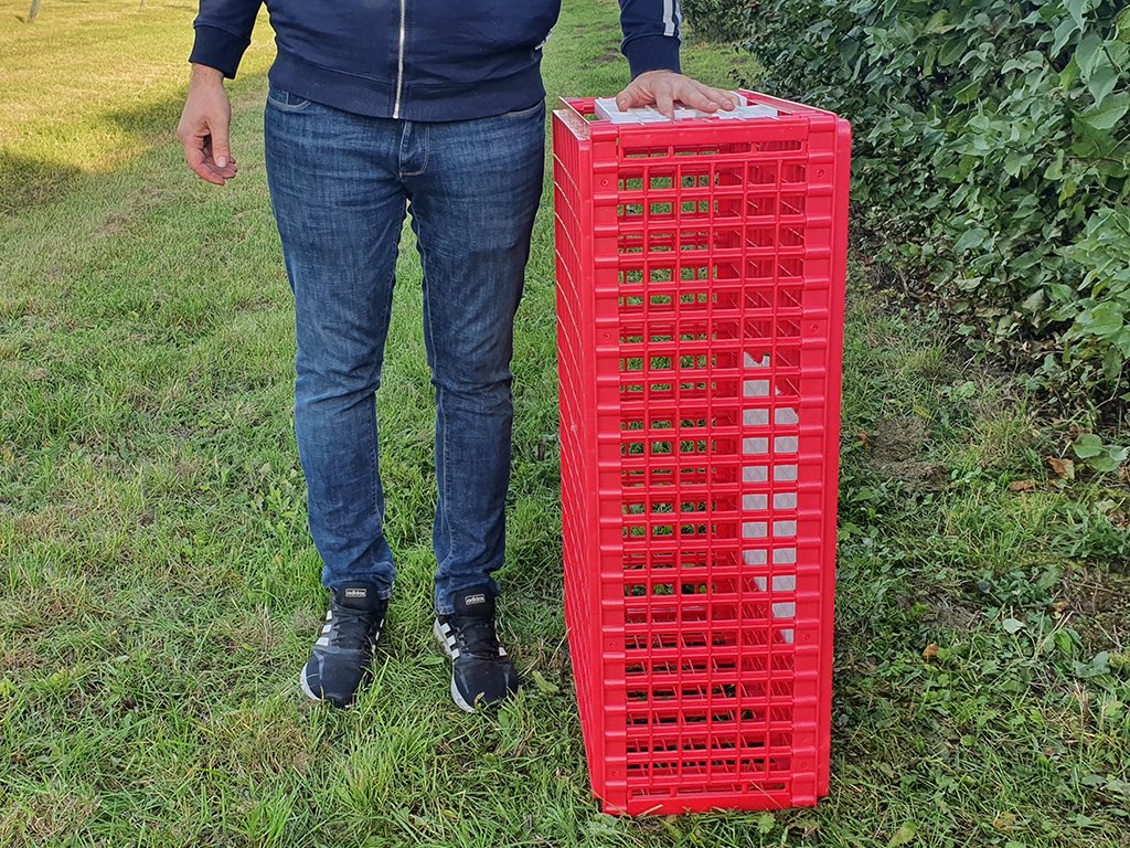 Přepravní box je dostatečně prostorný pro 18-20 ks větších druhů drůbeže a můžete v něm bezpečně přepravovat slepice, bažanty, křepelky, perličky, holuby či další živou drůbež.