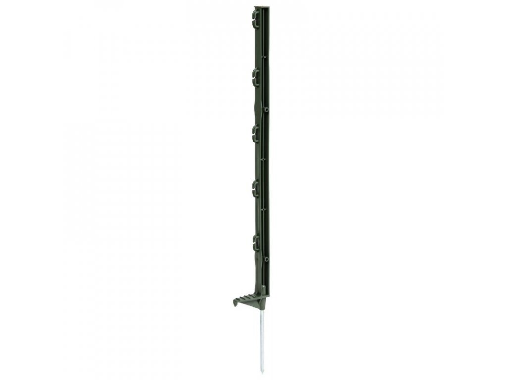 Stojka plastová pro elektrický ohradník s podélnou vzpěrou, kovovým hrotem a s úchyty pro pásku či lanko. Plastová tyčka je vhodná pro rychlé a mobilní oplocení pastviny, také se používá např. pro rozdělení pevné elektrické ohrady. Použít ji lze také pro sestavení elektrického výběhu pro slepice, králíky nebo psy.