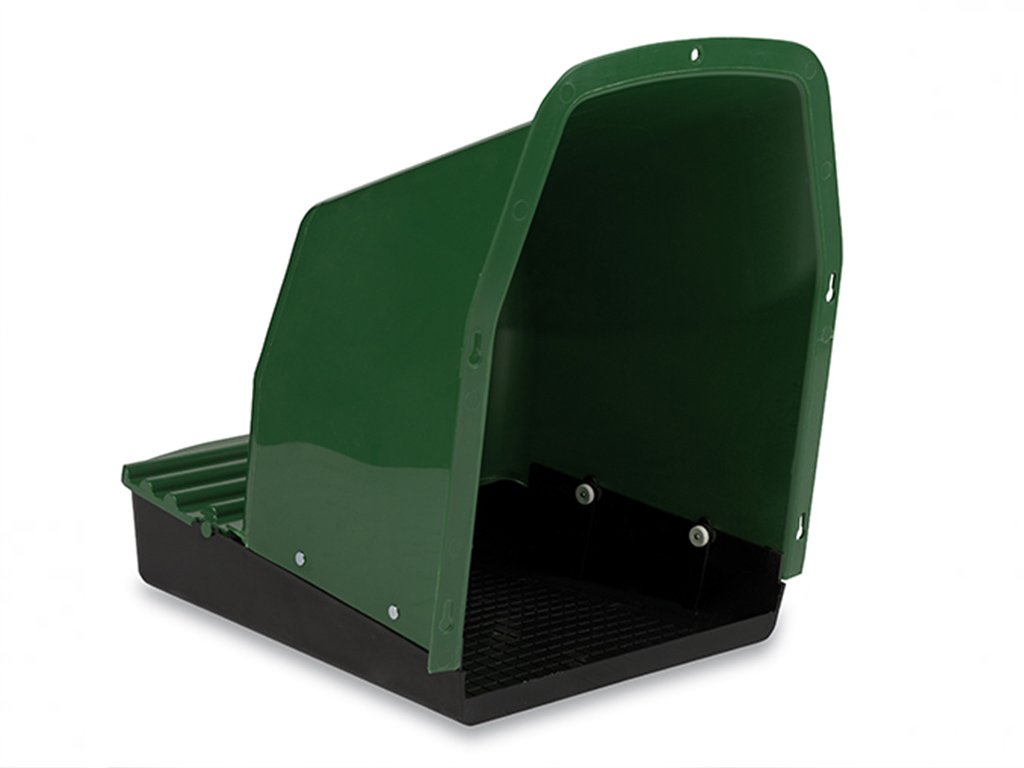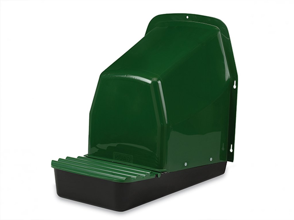 Snáškové hnízdo pro slepice se sběrným košíkem na vejce, venkovní, kapacita až pro 5 nosnic na jednu kukaň, dno hnízda je spádované, vejce se samo odkutálí do košíku s kapacitou až na 10 vajec, vyrobené z plastu, barva zelená. Jednoduché připevnění z vnější části kurníku, velice snadná údržba čistoty, rozměry 44cm délka (28cm bez košíku) x 37cm šířka x 50 cm výška.